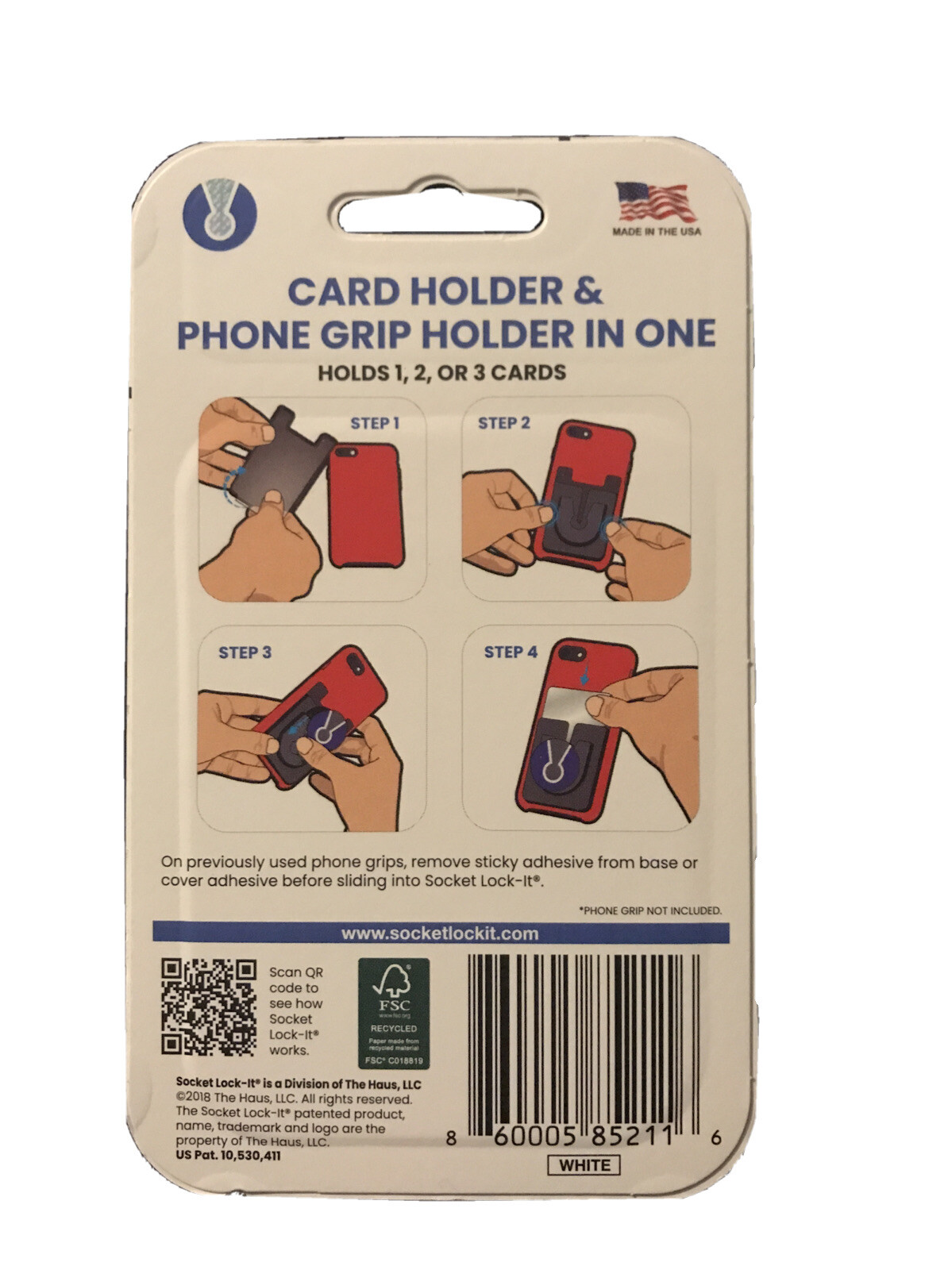 Socket Lock-It, Adhesive Card Holder Phone Grip Holder in One. NEW, SEALED