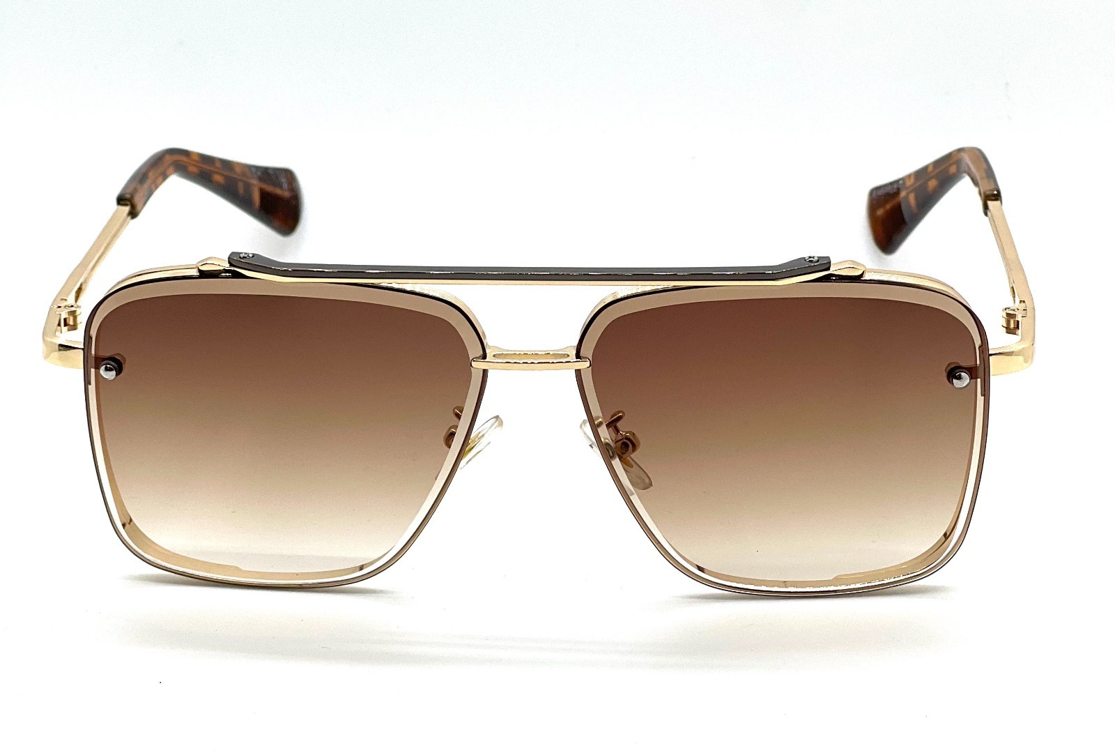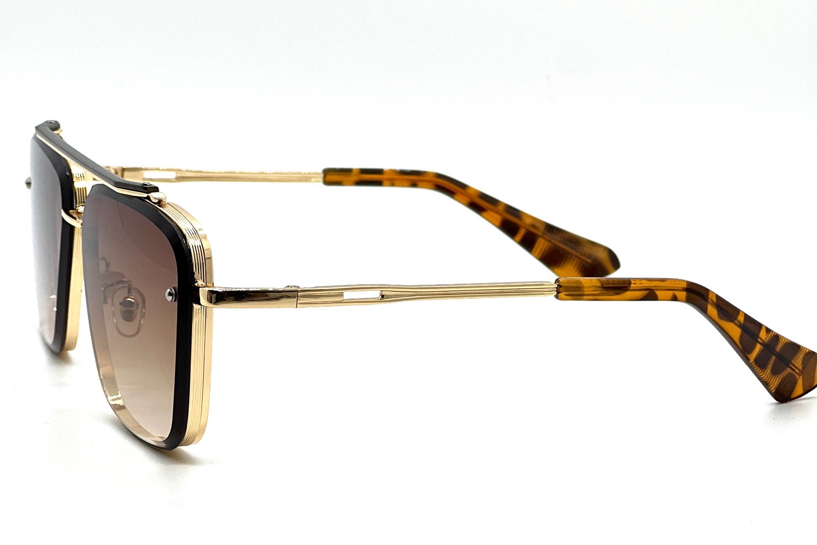 Men's Oversized Vintage Retro Shield Style SUN GLASSES Gold Frame Brown Lens New