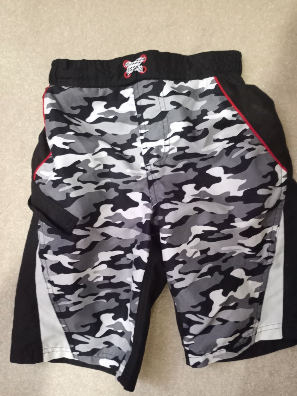 как выглядит OCEAN PACIFIC BOYS GRAY BLACK CAMOUFLAGE SWIMMING TRUNKS SIZE M 8 фото