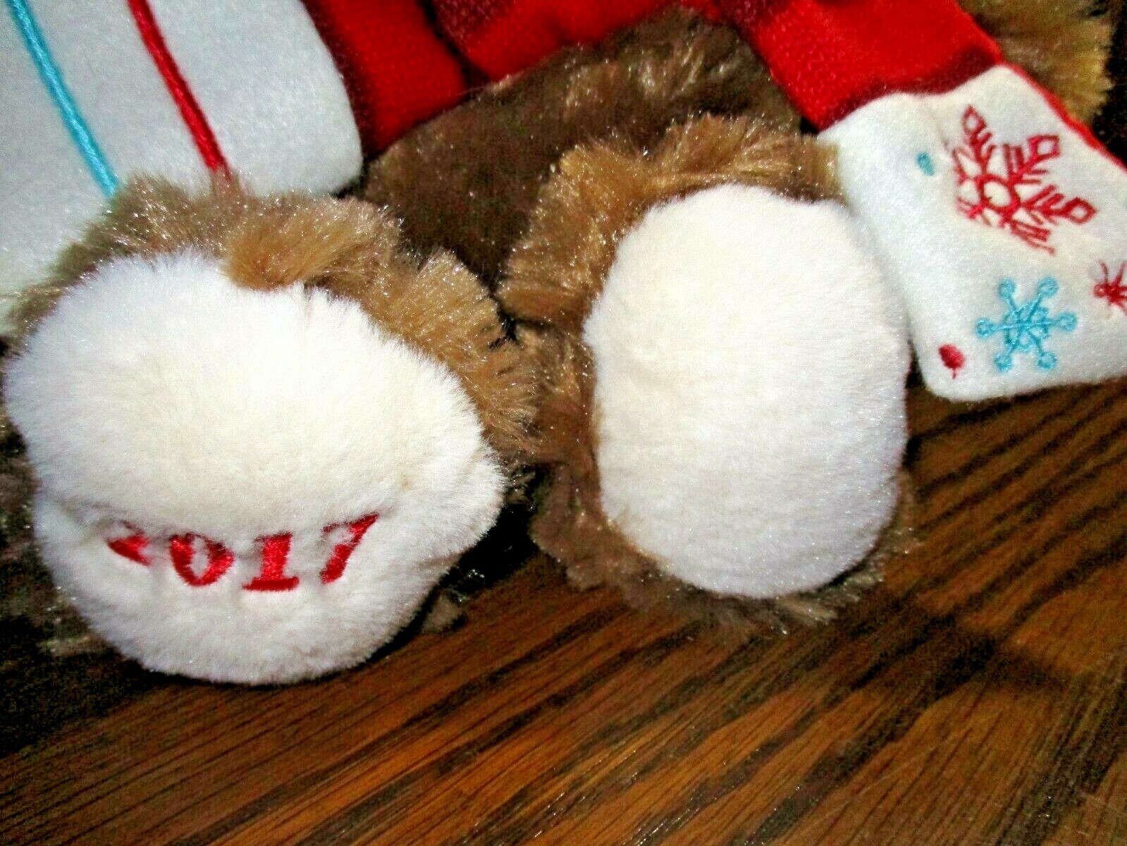 как выглядит Dan Dee 2017 Brown Bear 12" Tall Soft Plush Red Snowflake Scarf Santa Hat 556 фото