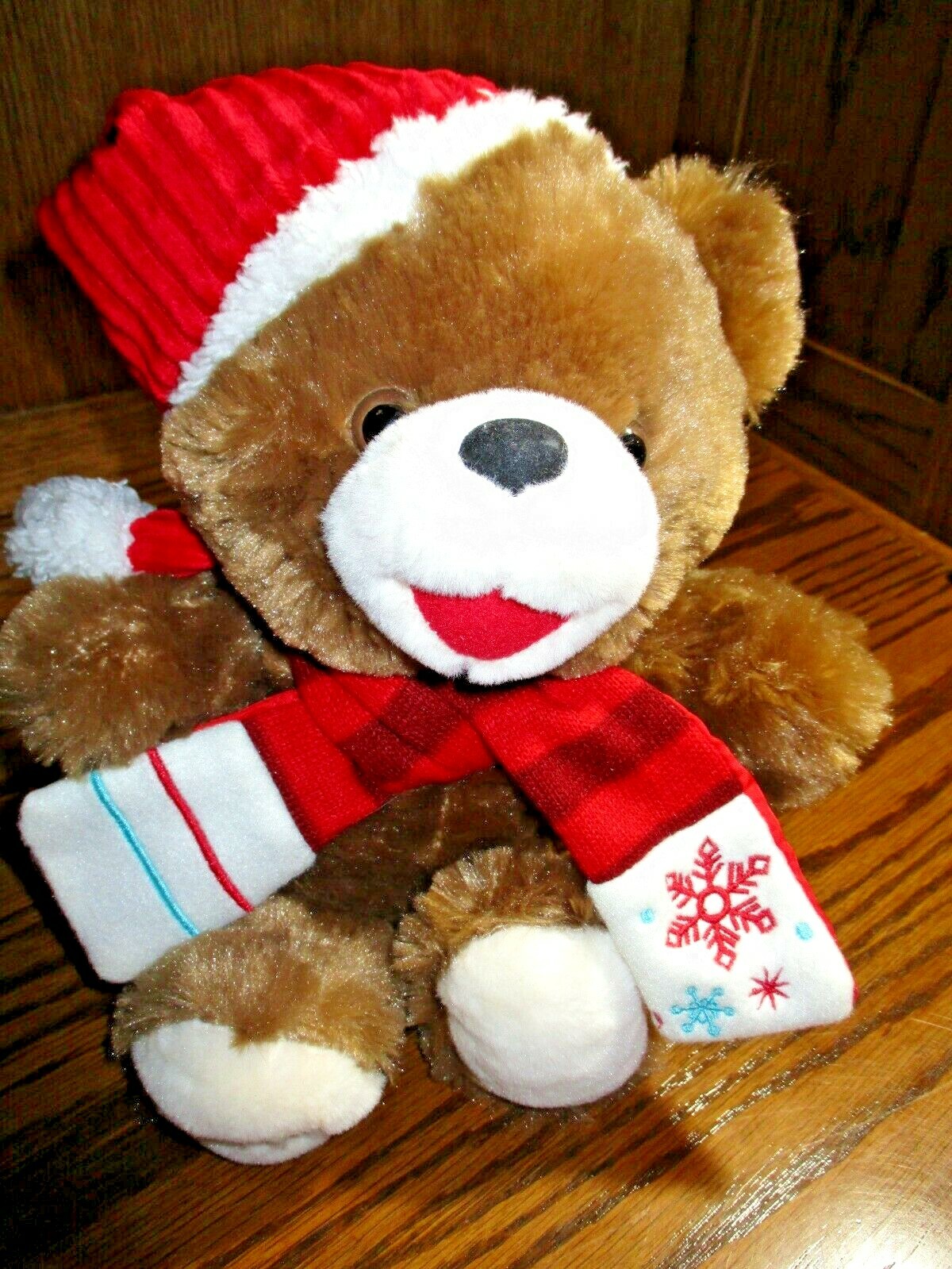 Dan Dee 2017 Brown Bear 12 Tall Soft Plush Red Snowflake Scarf Santa Hat 556