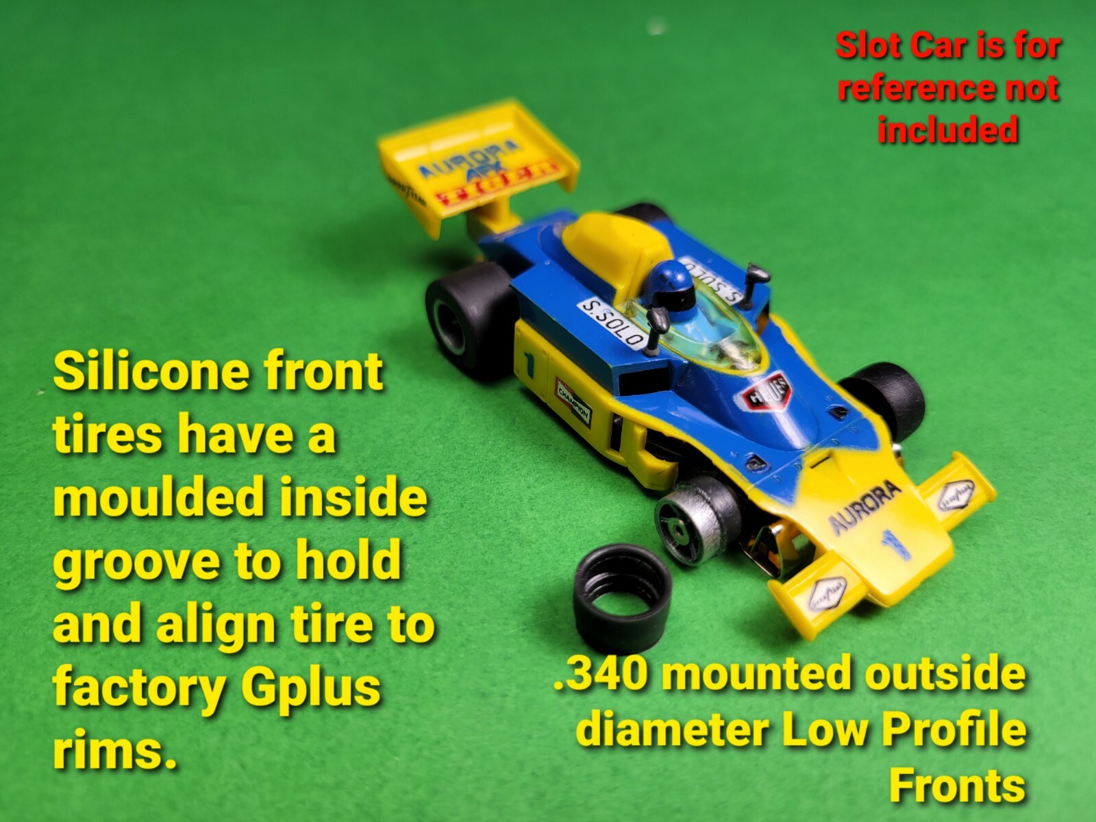 AFX G G-PLUS AURORA 16 Piece Silicone Tires LOW Profile FRONTs HO Slot Car