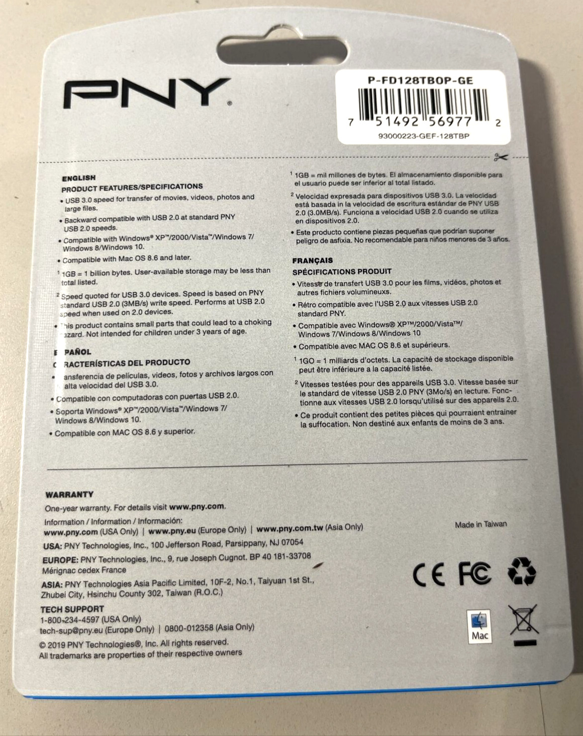 New PNY Turbo Attach 3, 128GB USB 3.0 Flash Drive, 10 X Faster, 4K Ultra HD