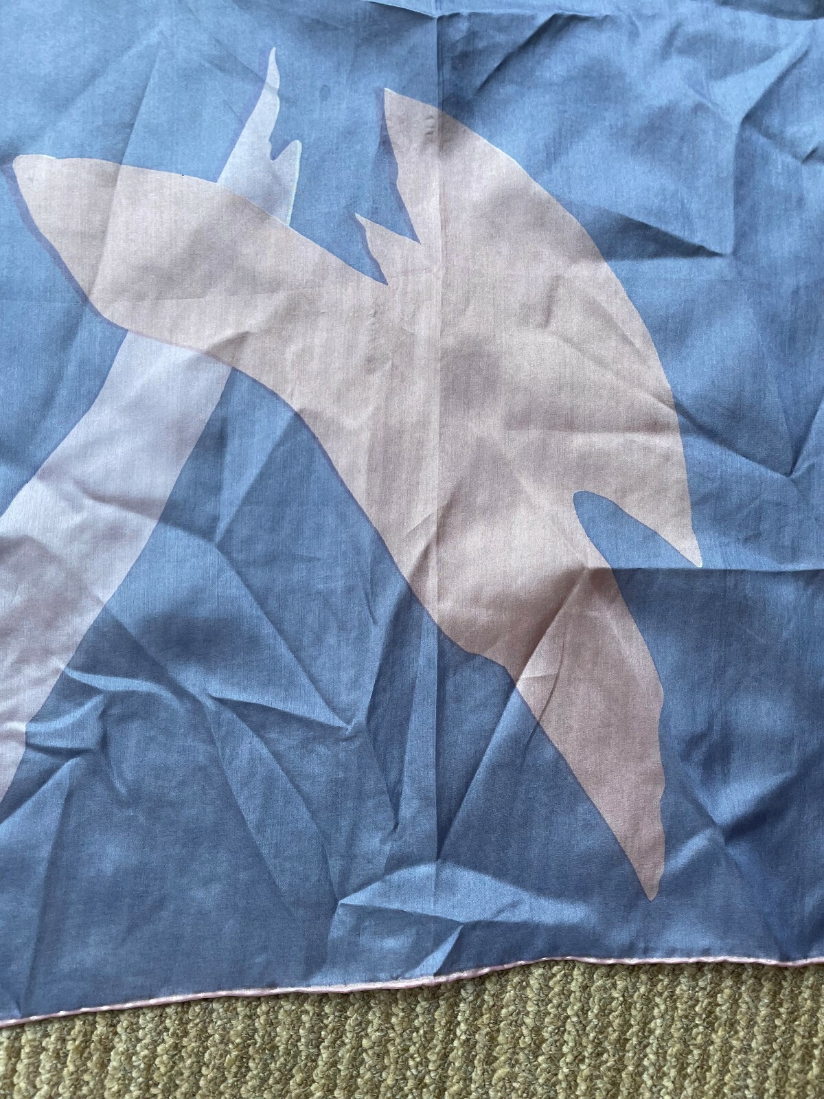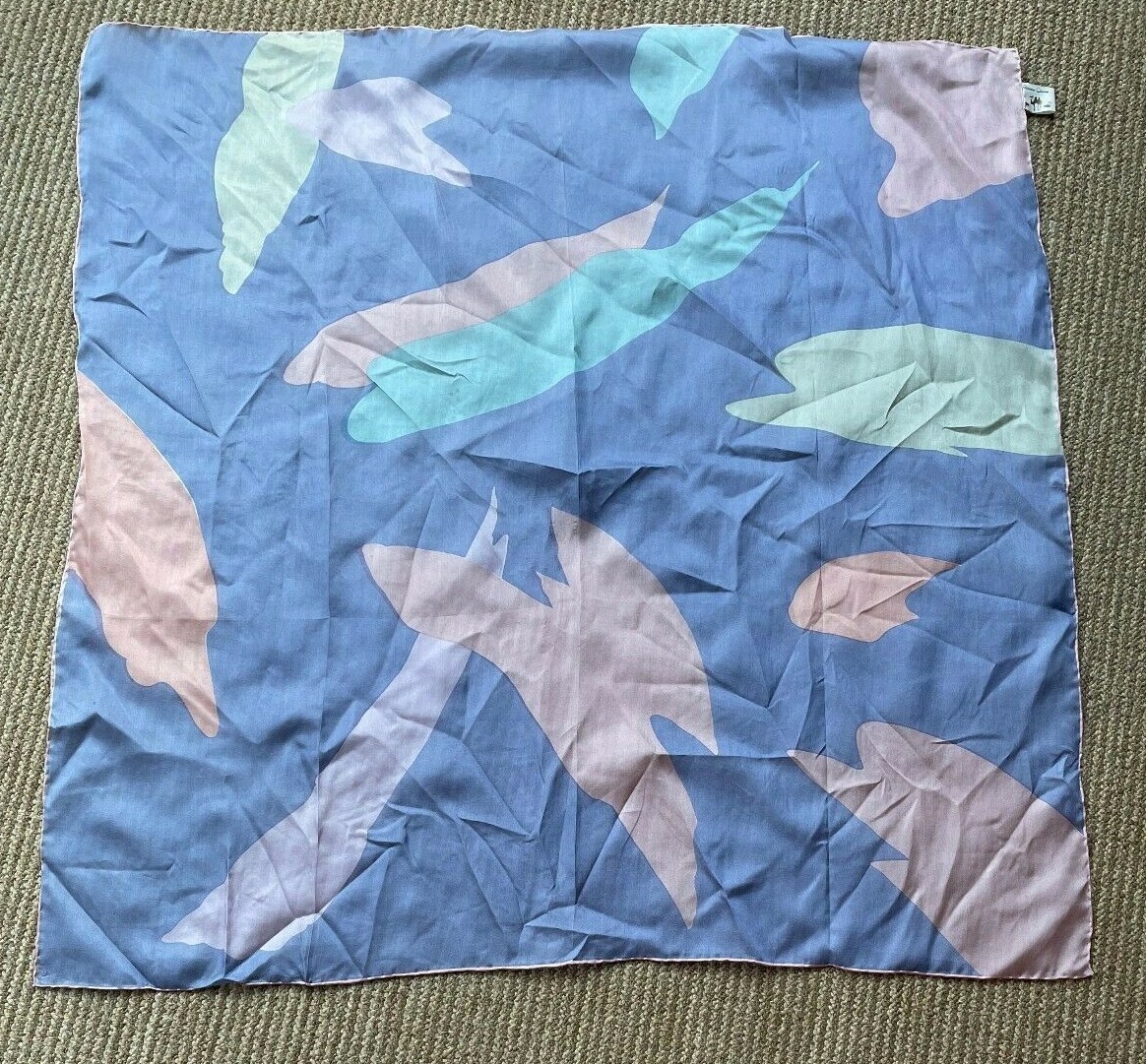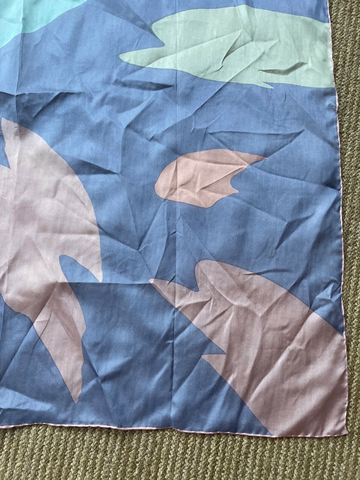 как выглядит Vintage Golden Camel Silk Scarf hand Rolled Hand Printed 28x28 Abstract фото