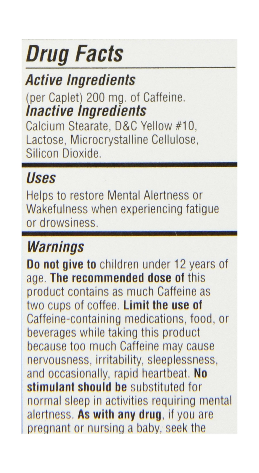 Active Ingredients: Lactose, Microcrystalline Cellulose, Calcium Stearate, Caffeine