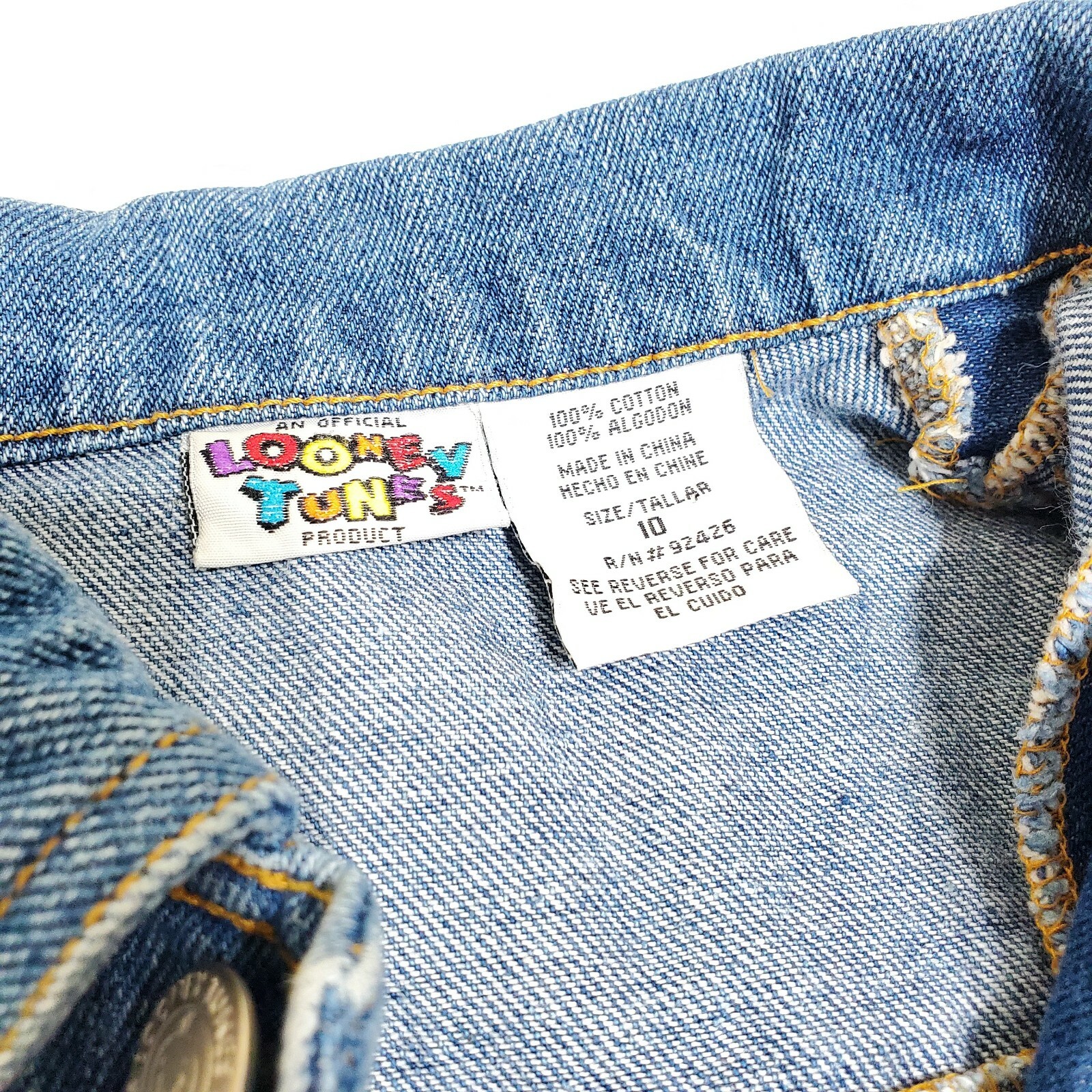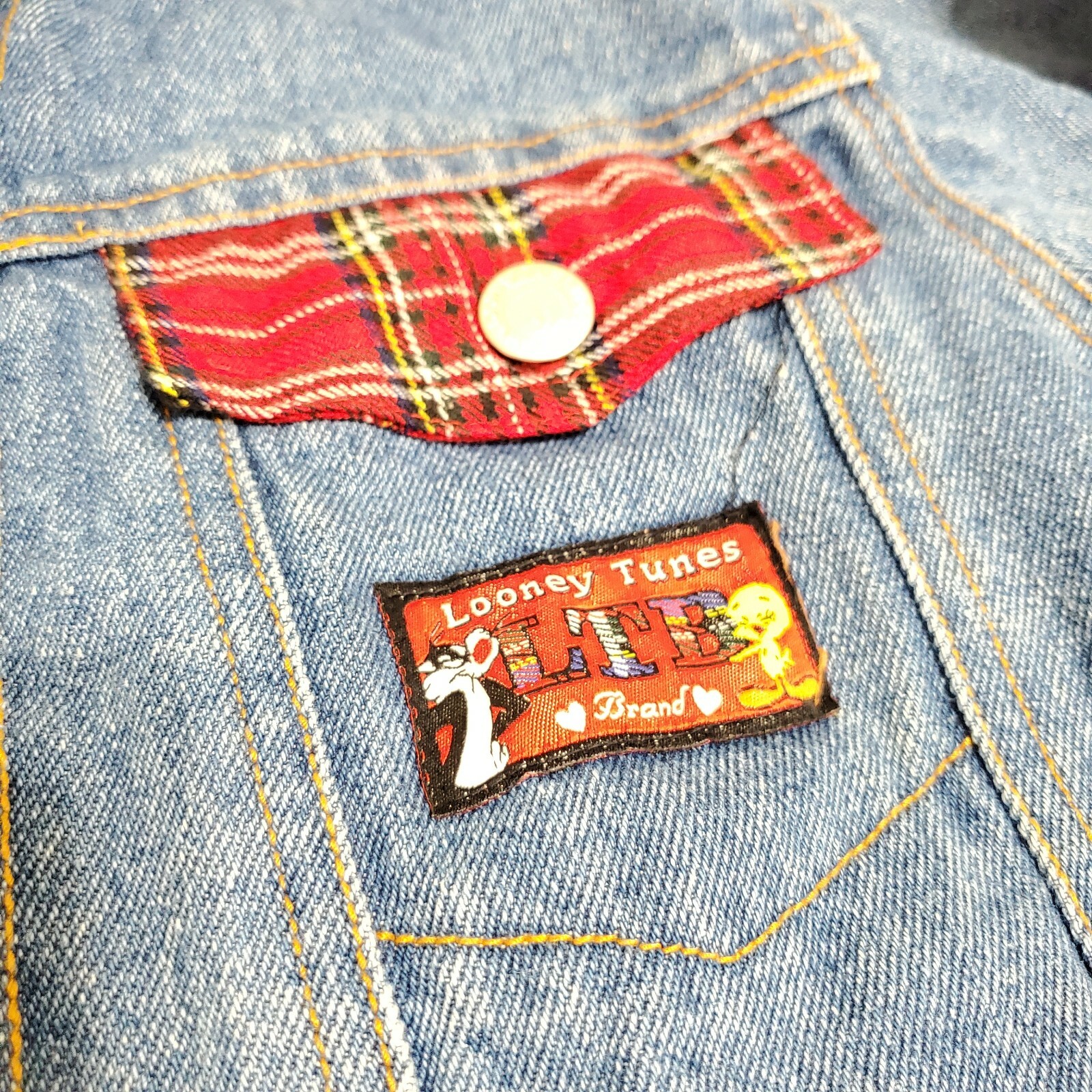 VTG 1996 Official Looney Tunes WB Plaid Tweety Bird Jean Jacket Youth Size 10