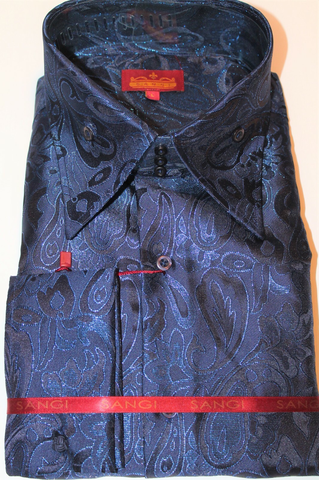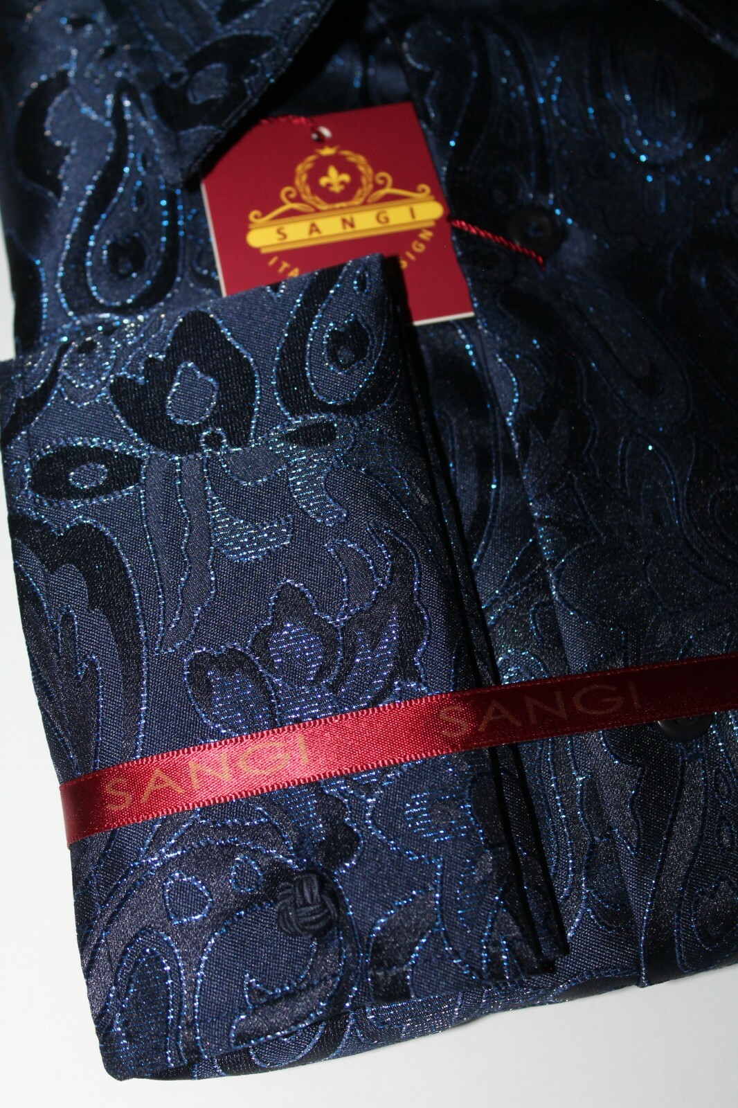 как выглядит Mens Sophisticated Navy Blue 3-Button High Collar Cuffed Shirt SANGI TUSCANY P43 фото