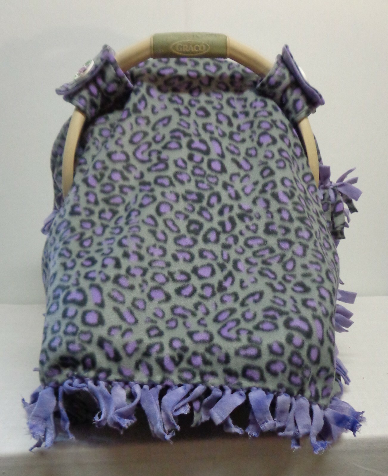 как выглядит Purple Cheetah / Grey Fleece Infant/ Baby Car Seat Canopy/Tent/Cover Handmade фото