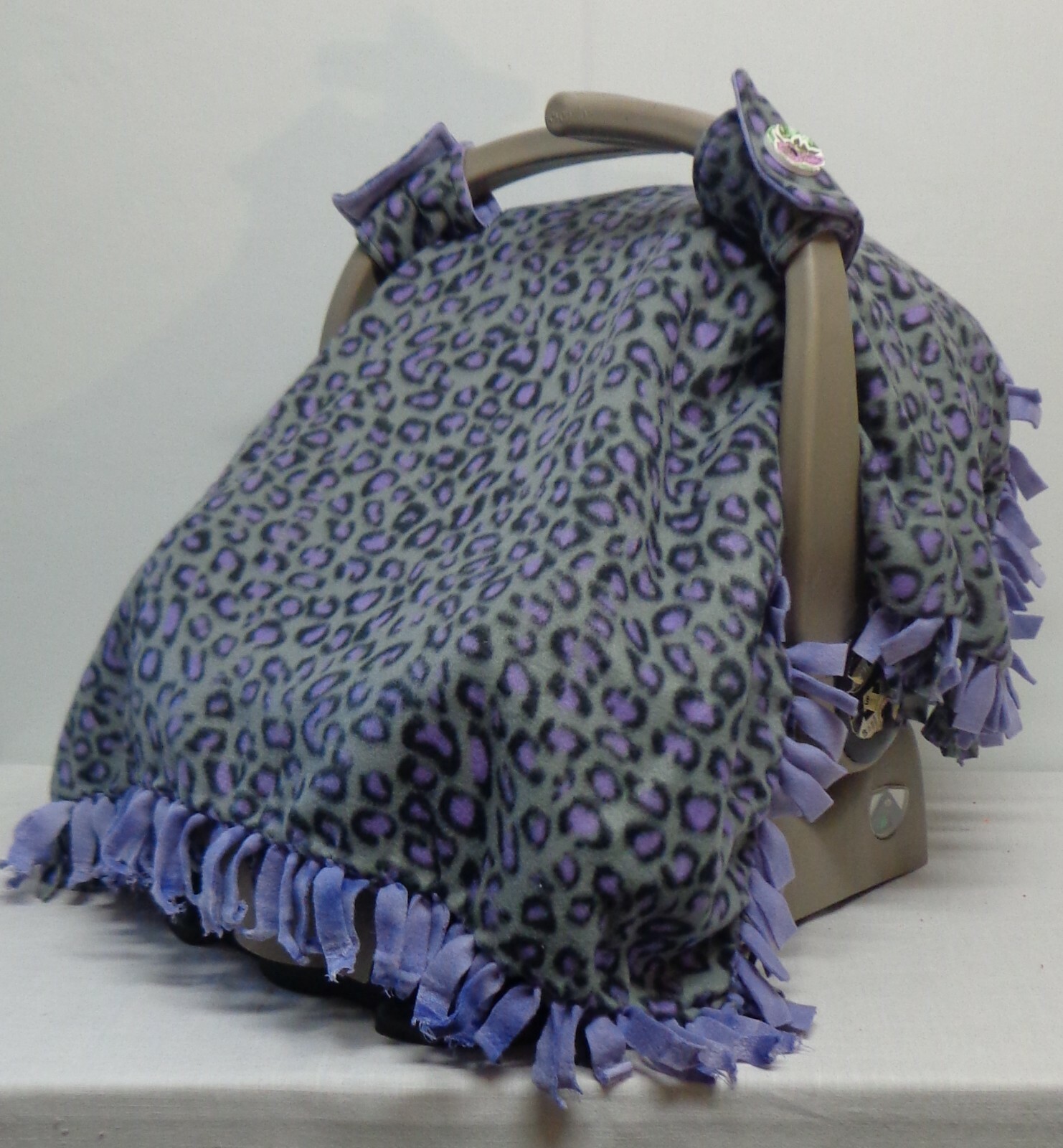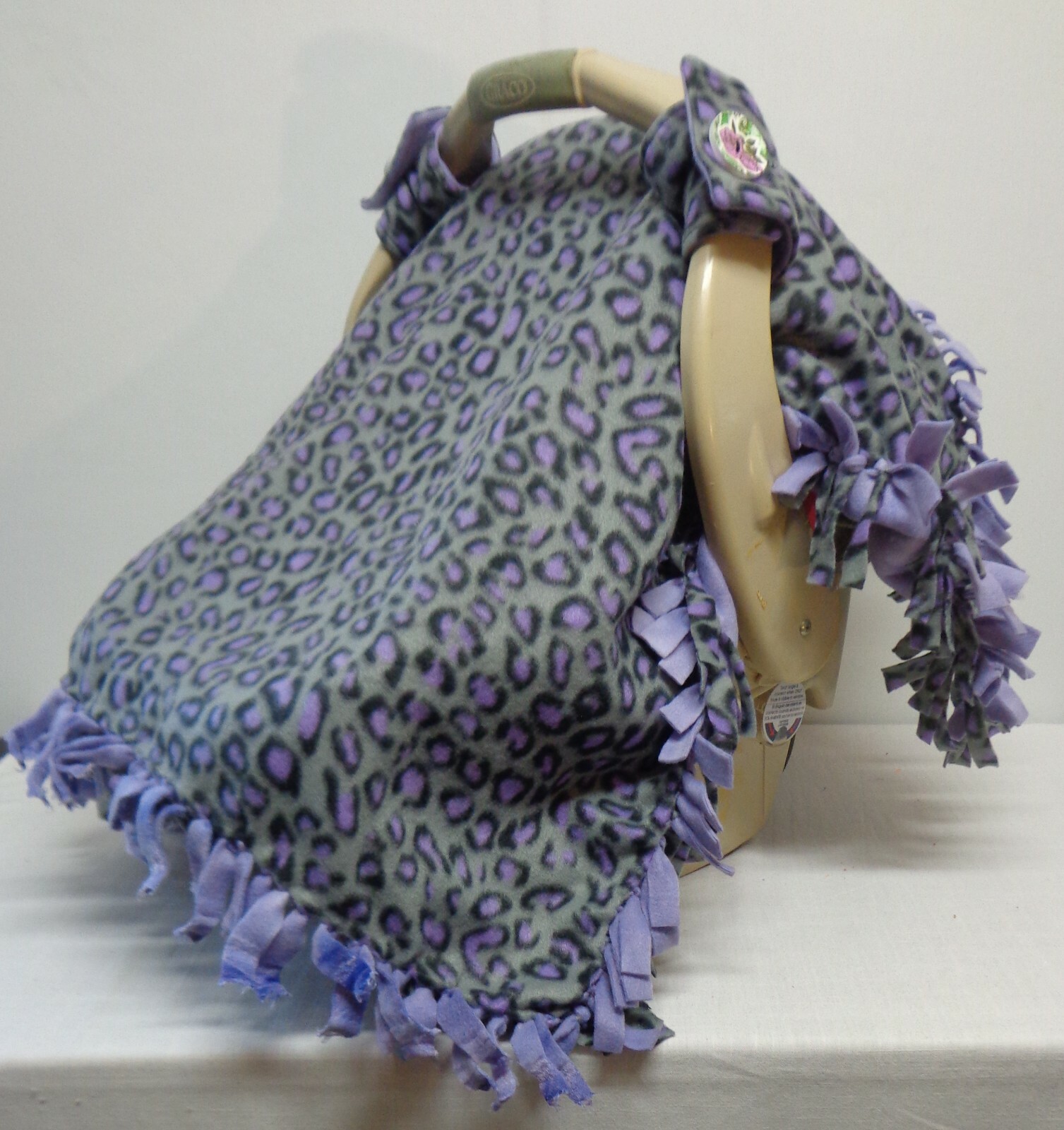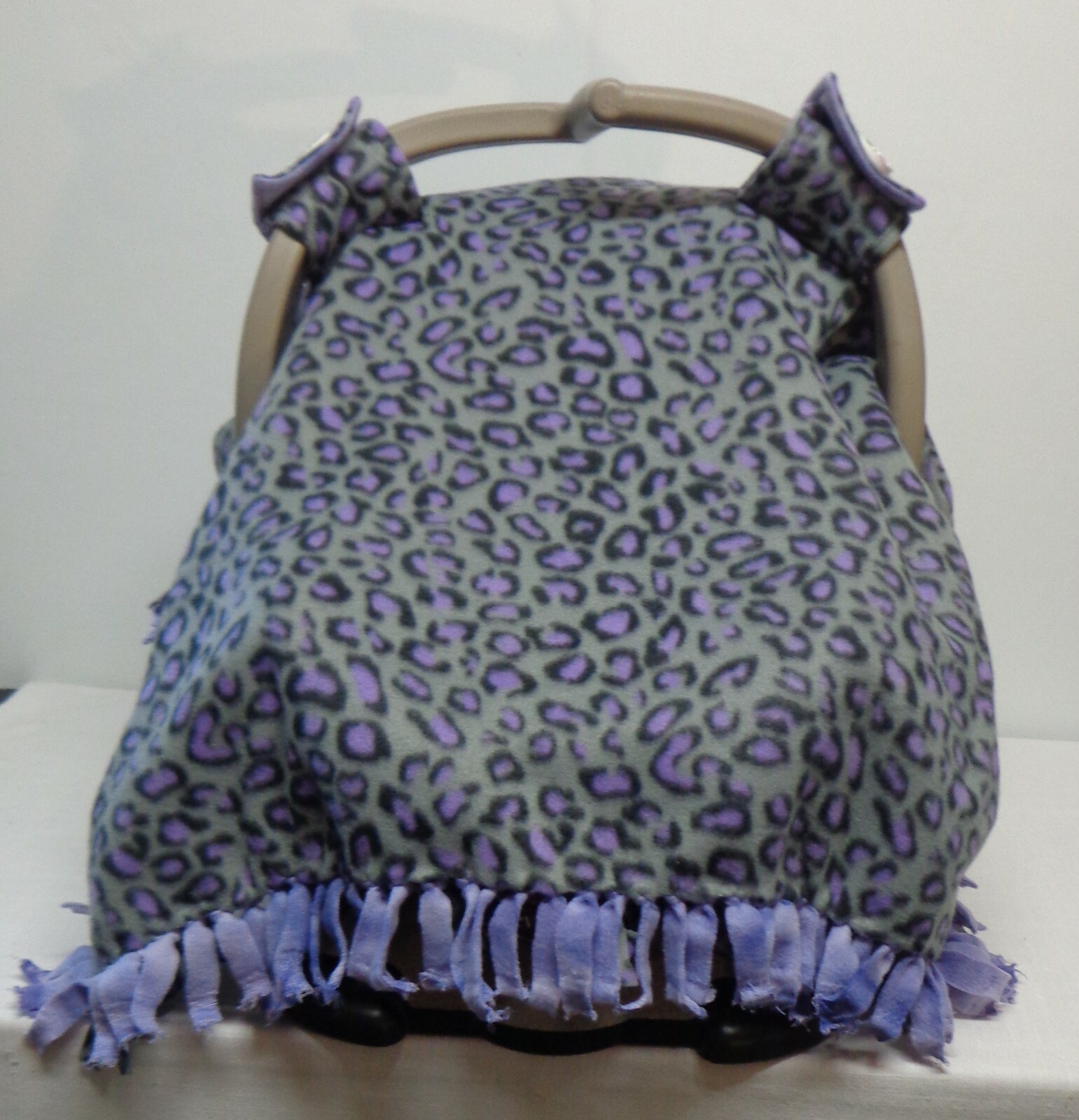 Purple Cheetah / Grey Fleece Infant/ Baby Car Seat Canopy/Tent/Cover Handmade