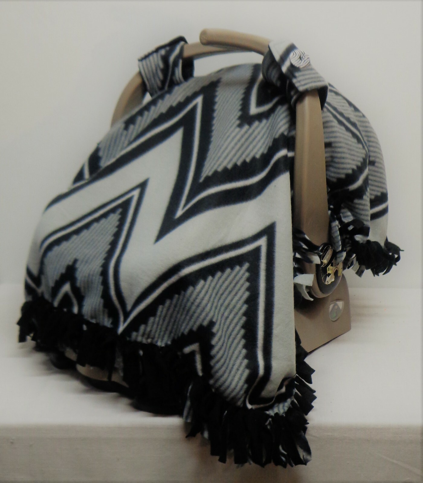 как выглядит Black Grey Chevron Fleece Infant/ Baby Car Seat Canopy/Tent/Cover Handmade фото