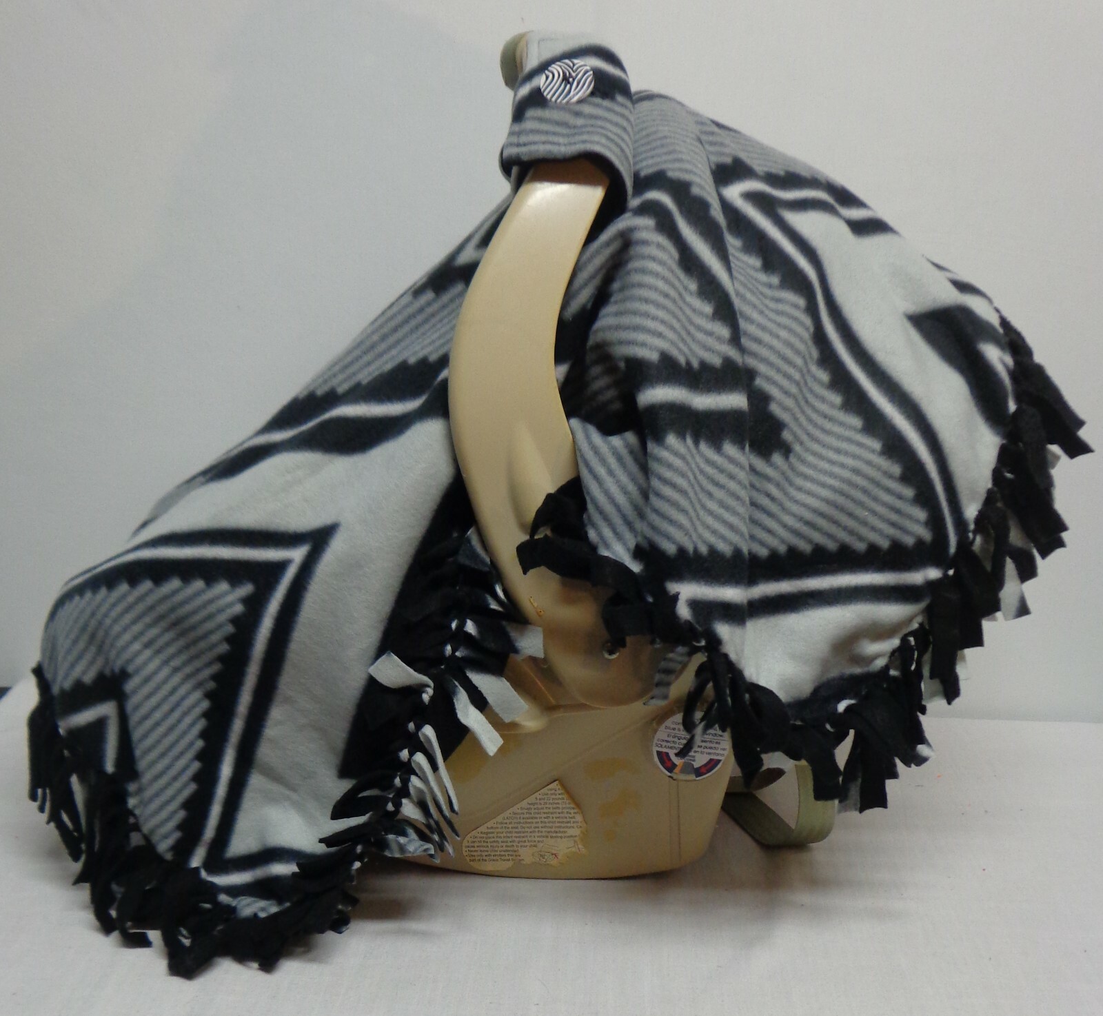 Black Grey Chevron Fleece Infant/ Baby Car Seat Canopy/Tent/Cover Handmade