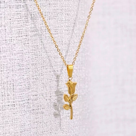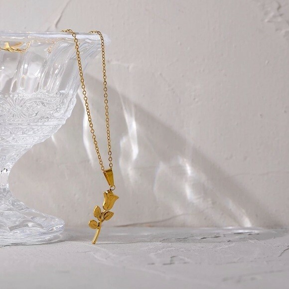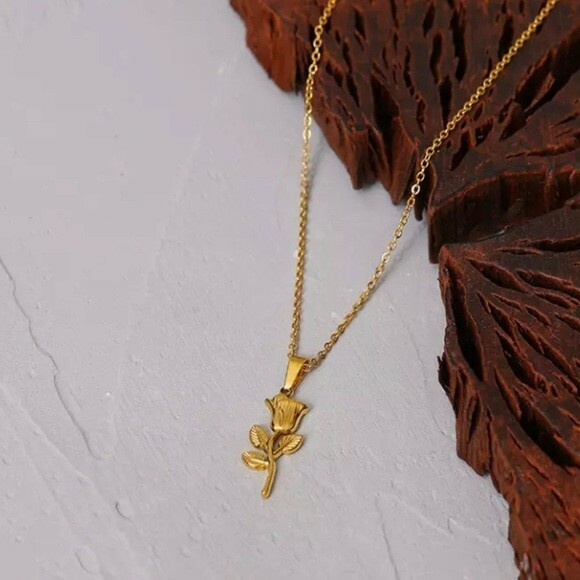 как выглядит Gold plated Romantic Rose Pendant Necklace фото