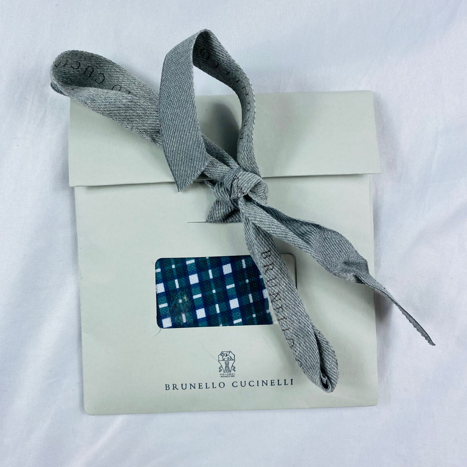 как выглядит Brunello Cucinelli Blue Green Checked Cotton Mens Pocket Square NWT фото