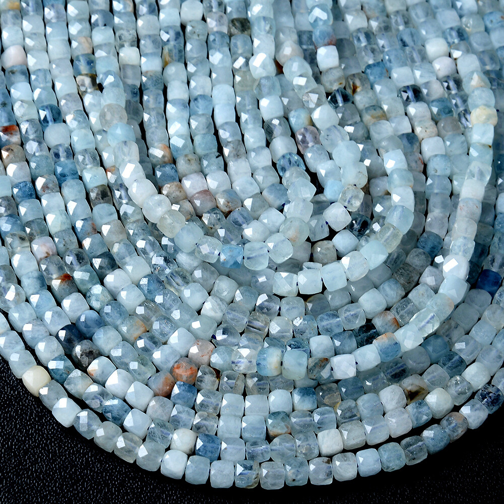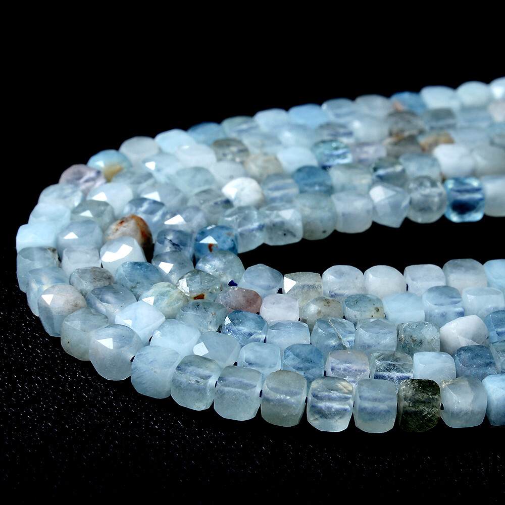 как выглядит 4MM Natural Aquamarine Gemstone Grd AA Micro Faceted Cube Loose Beads P44 фото