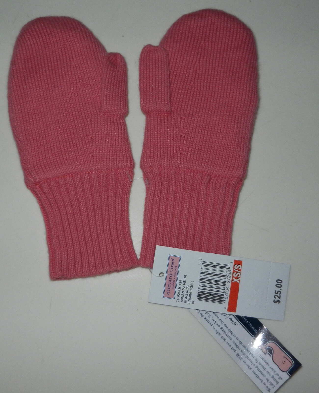 NWT GIRL'S XS/S VINEYARD VINES WHALE-N-TAIL MITTENS PINK SRP 25