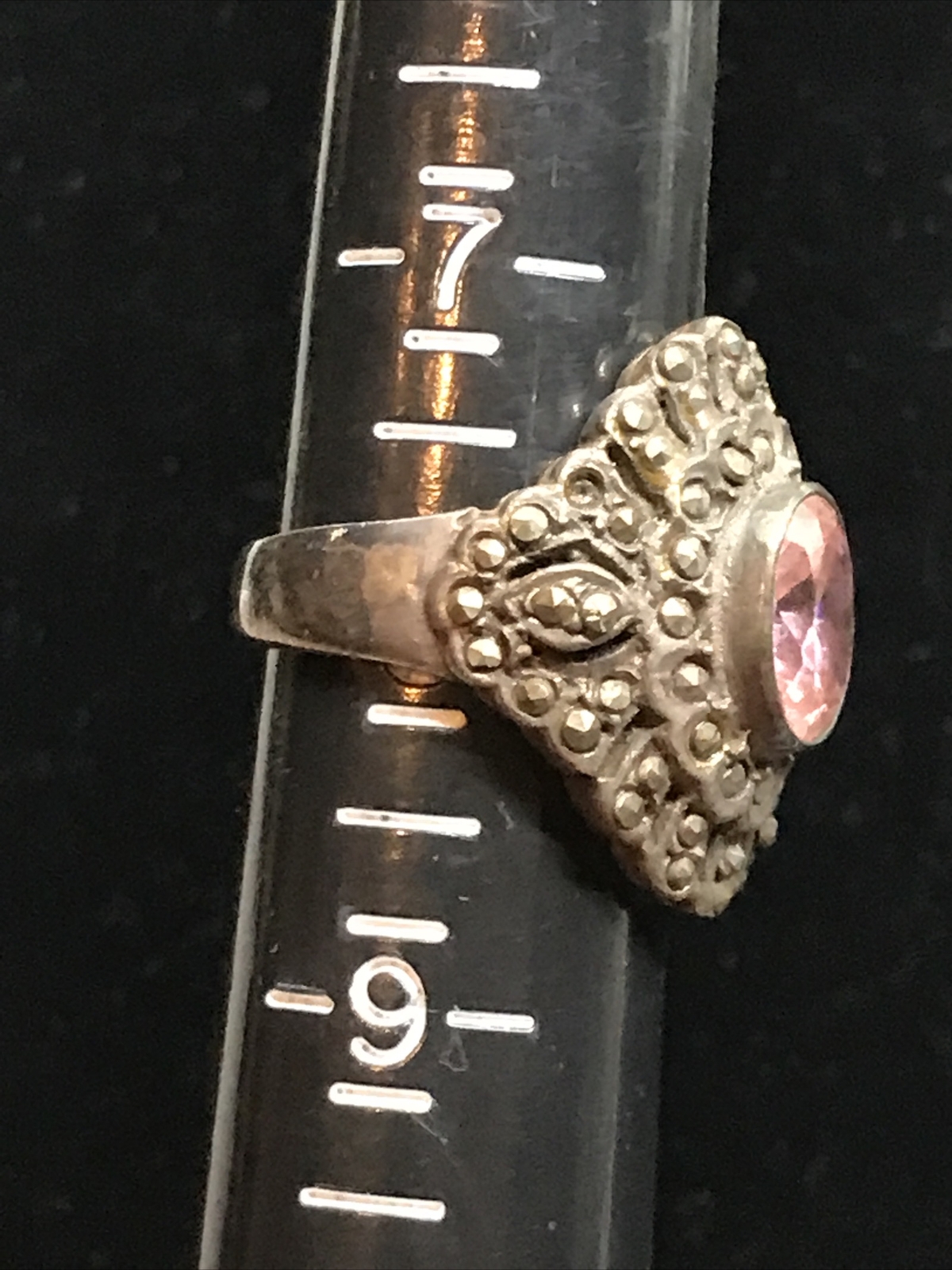 как выглядит Vintage Sterling Silver Marcasite / Various Stones RIng sz 8 choice of design фото