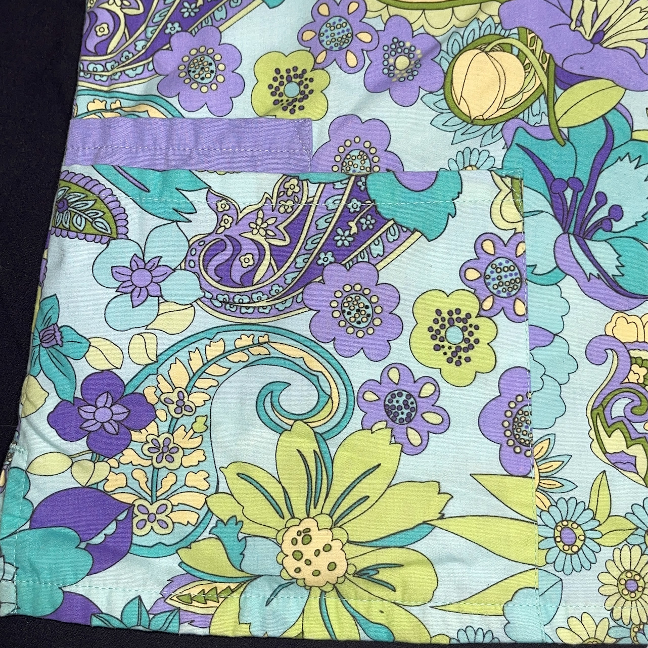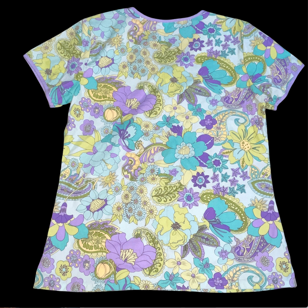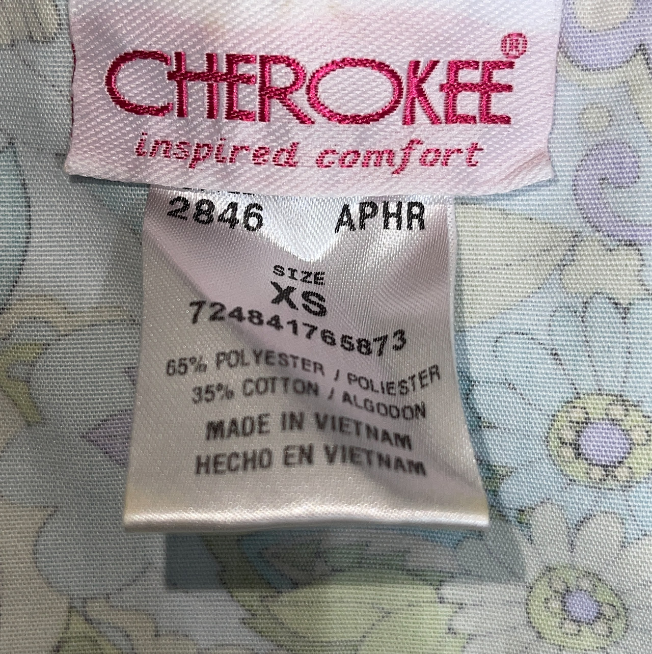 Cherokee Women Scrub Shirt Purple Teal Floral Paisley Size XS Extra Small Nurse