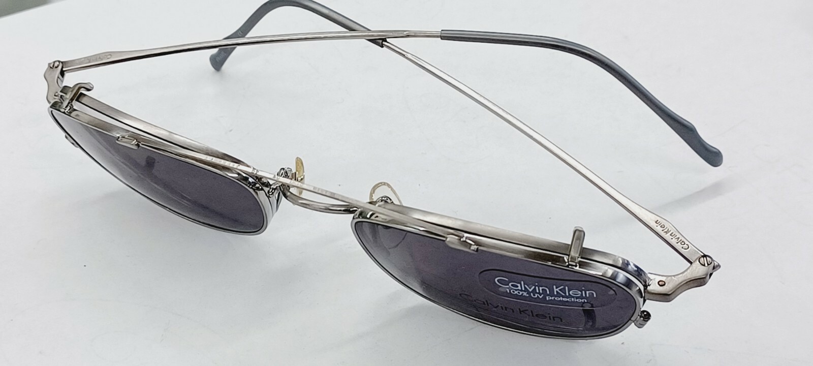 как выглядит VINTAGE CALVIN KLEIN Eyeglasses CK515 49 Sun Clip On 51-20 Titanium JAPAN Silver фото