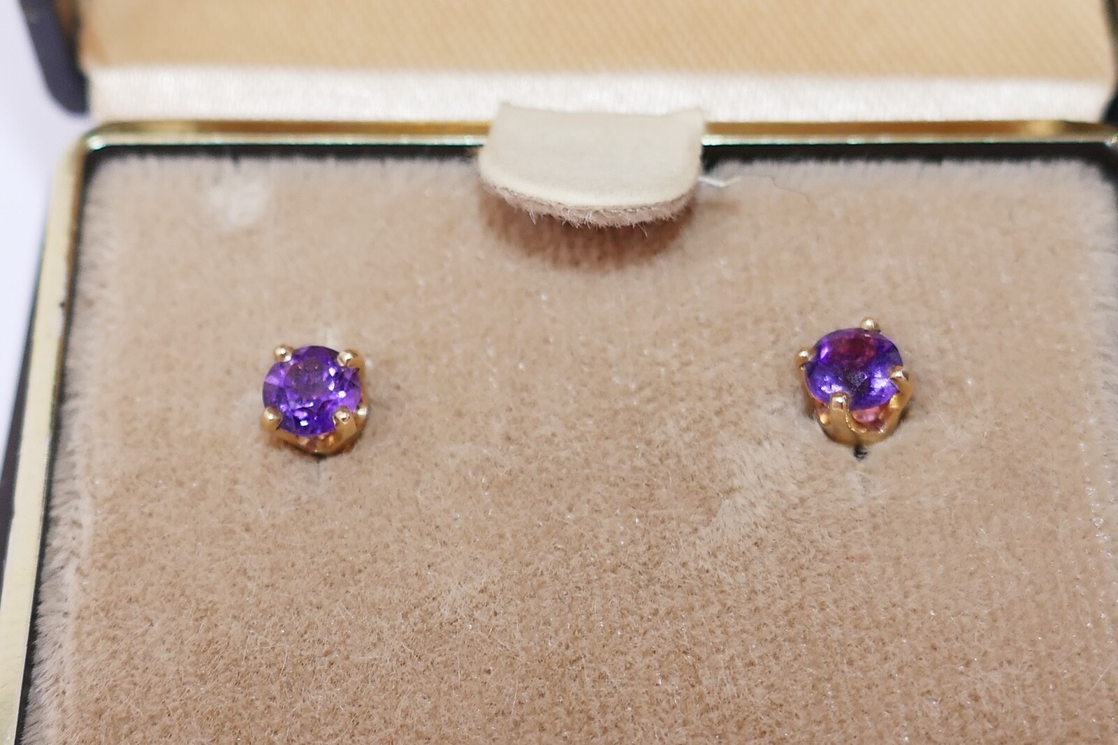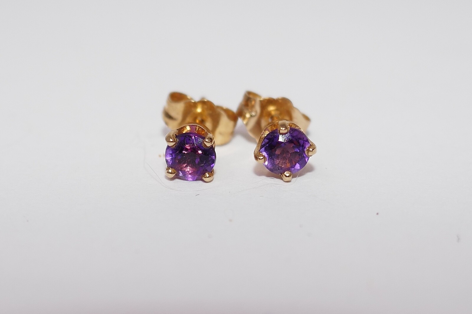 как выглядит 14kt Yellow Gold Round Amethyst Stud Earrings фото