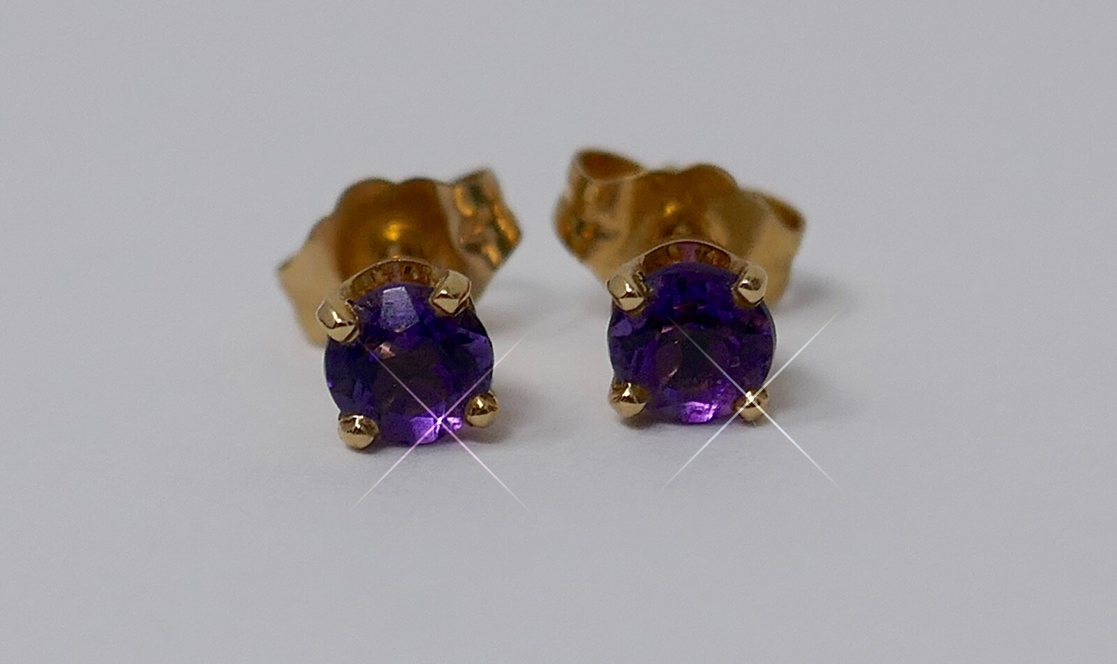 14kt Yellow Gold Round Amethyst Stud Earrings