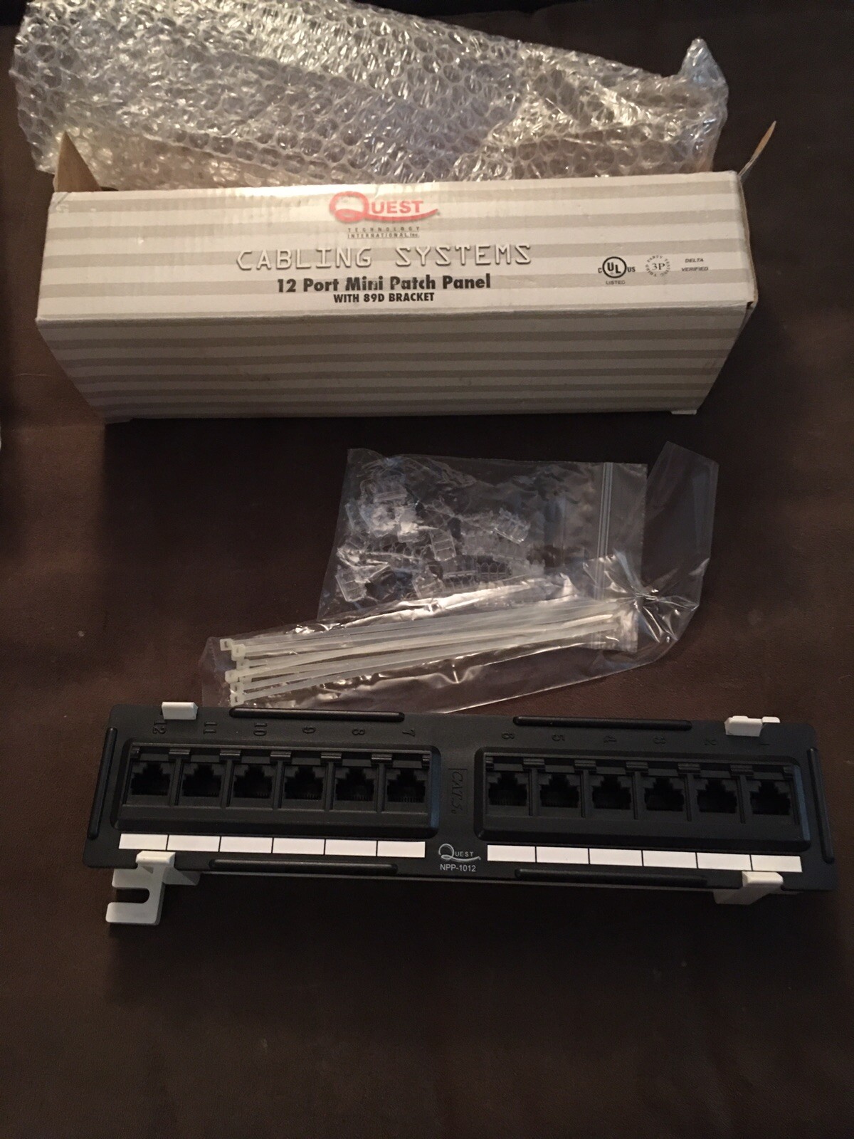 Quest Cabling System 12 port Mini Patch Panel w/89D Bracket Cat 5e