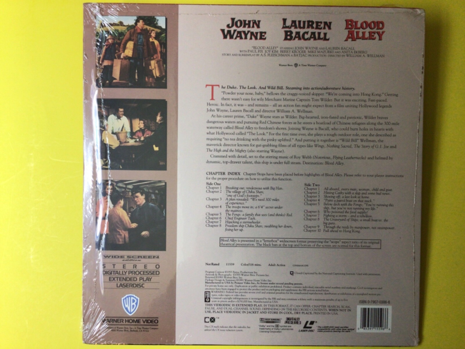 BLOOD ALLEY - John Wayne / Lauren Bacall - LASERDISC - NRMT - w/ shrink wrap