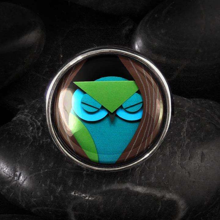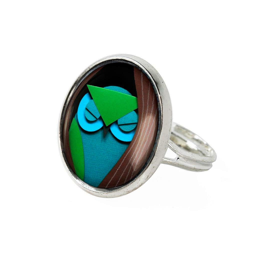 Paper Craft Owl Ring - Teal Fantasy Handmade Silver Adjustable Ring