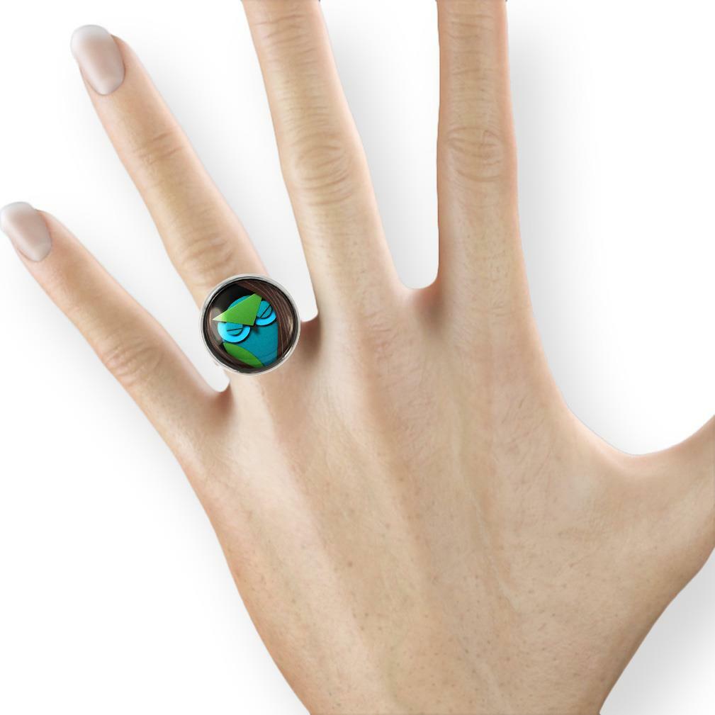 как выглядит Paper Craft Owl Ring - Teal Fantasy Handmade Silver Adjustable Ring фото