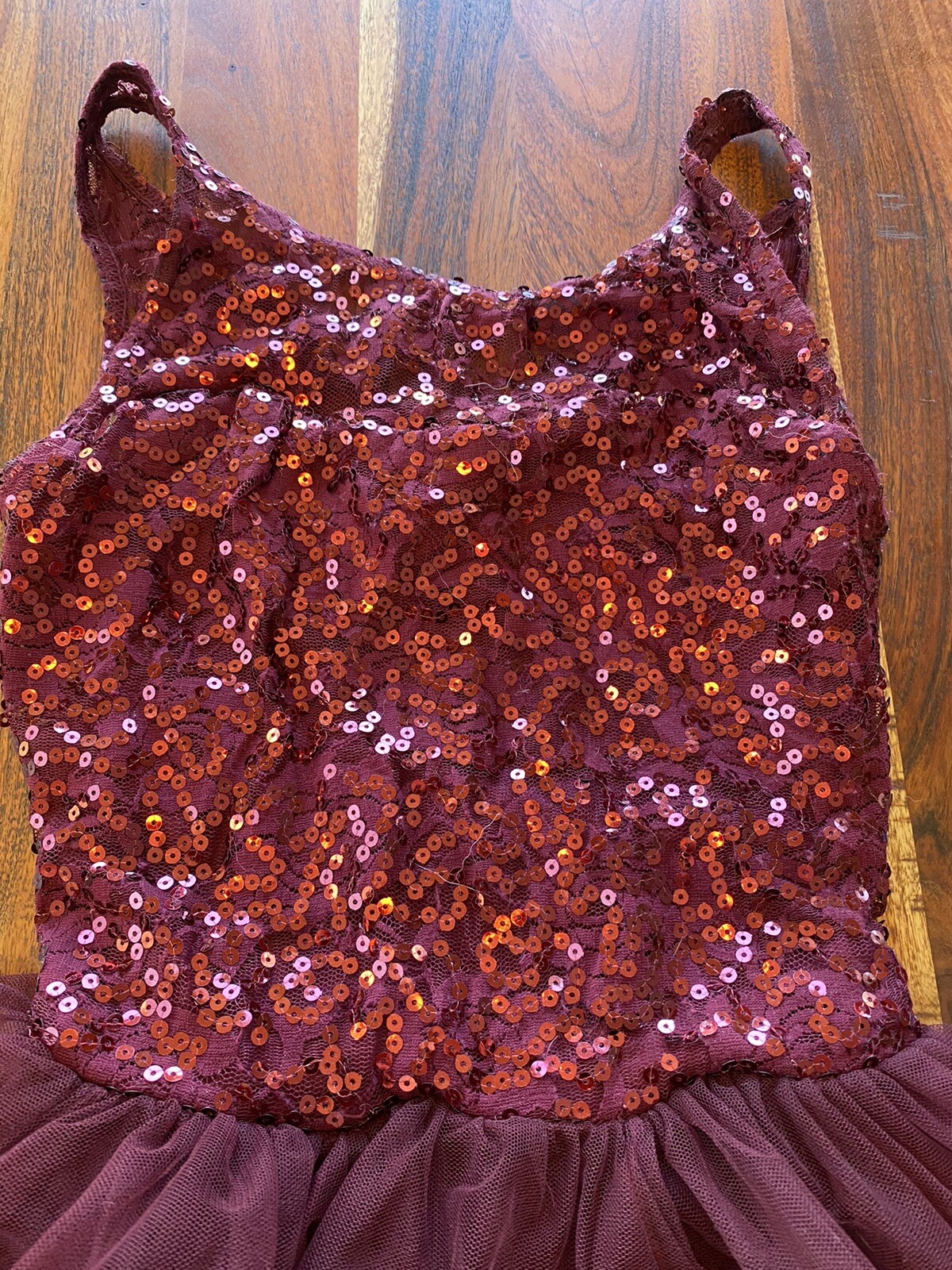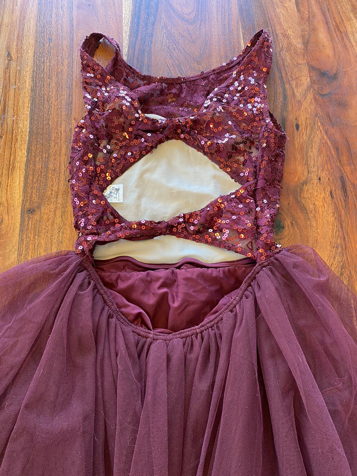 как выглядит Weissman dance costume child large Maroon Sequin Tulle Really Pretty фото