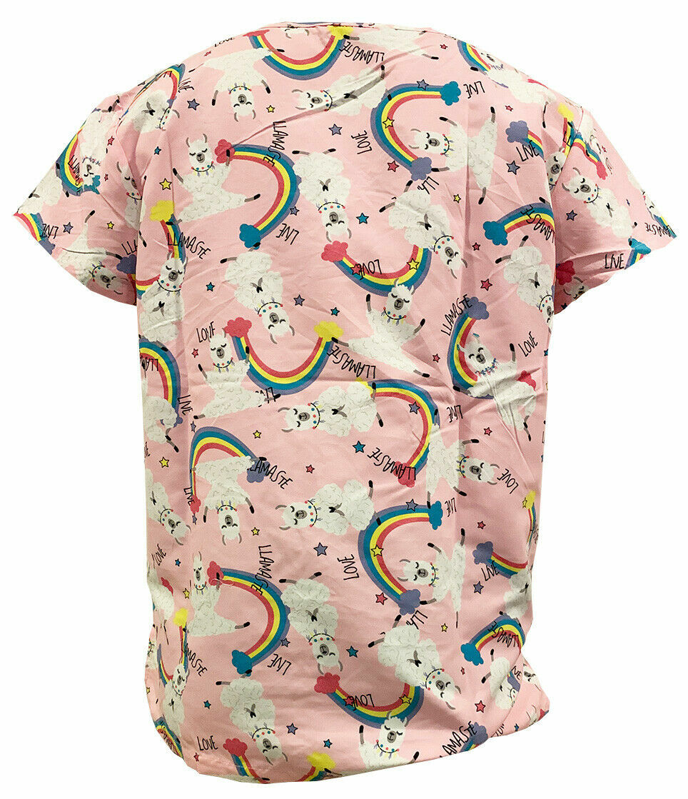 как выглядит Serene Uniform Womens Fashion Medical Scrub Tops Pink Daily Llama Rainbow M фото