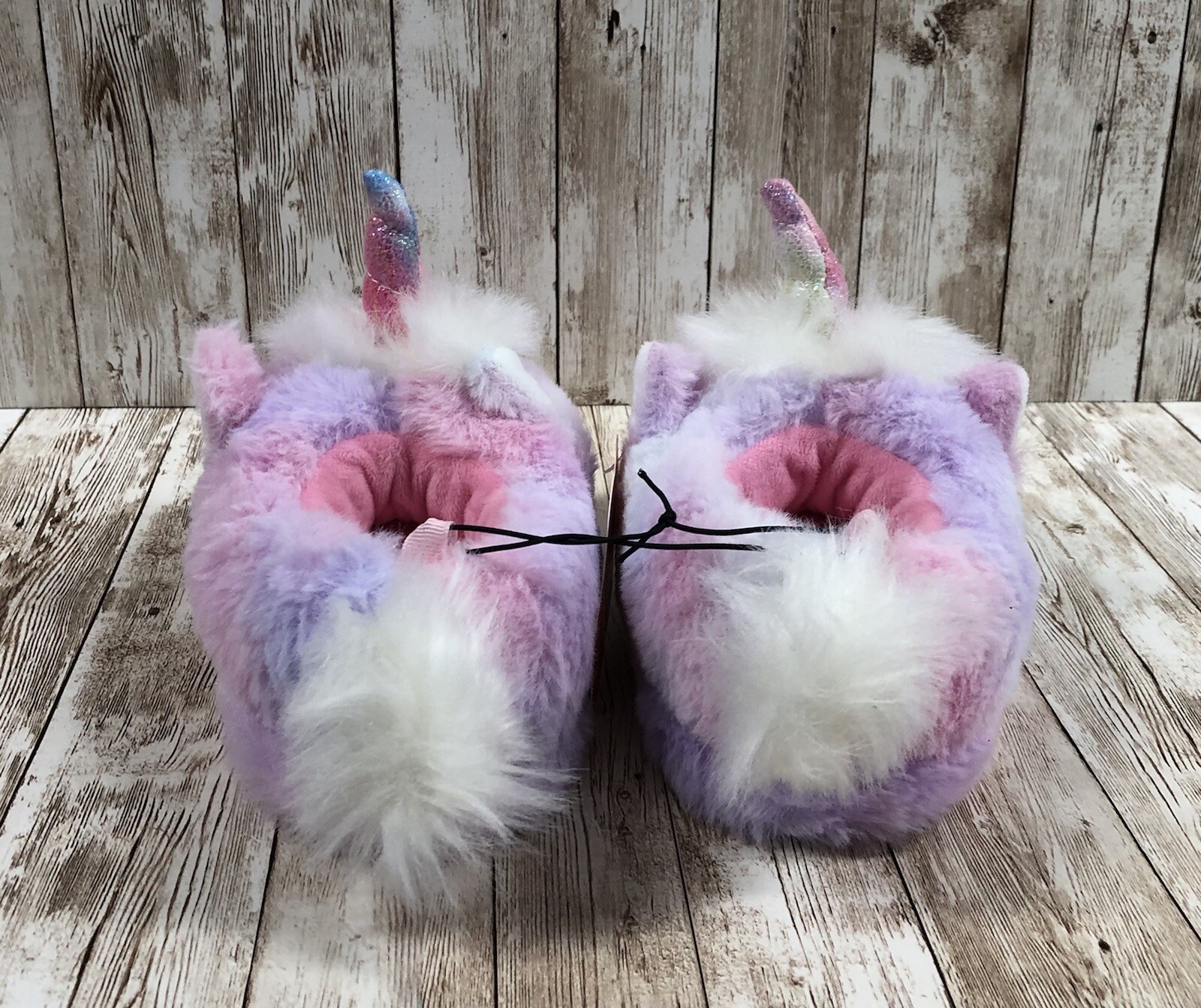 как выглядит New Girls Pastel Rainbow Unicorn Plush Slip-On House Shoes Slippers Size 7/8 фото