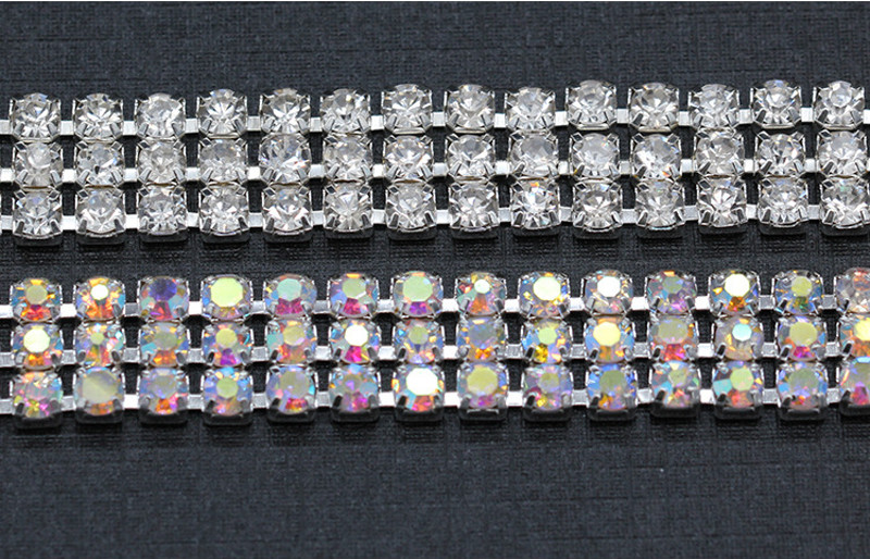 3-row 1yard SS6-SS18 Rhinestone Chain in Silver/Golden Brass Sew on Dress Crafts