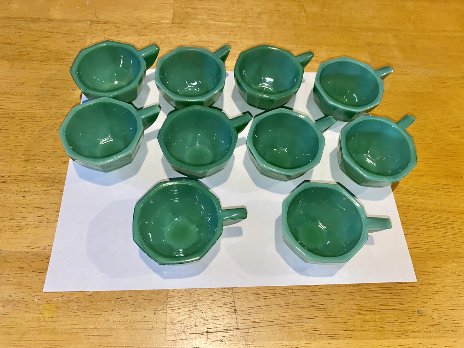 как выглядит 15 Akro Agate Vintage Green Tea Cups Octagonal/Round Shapes Children