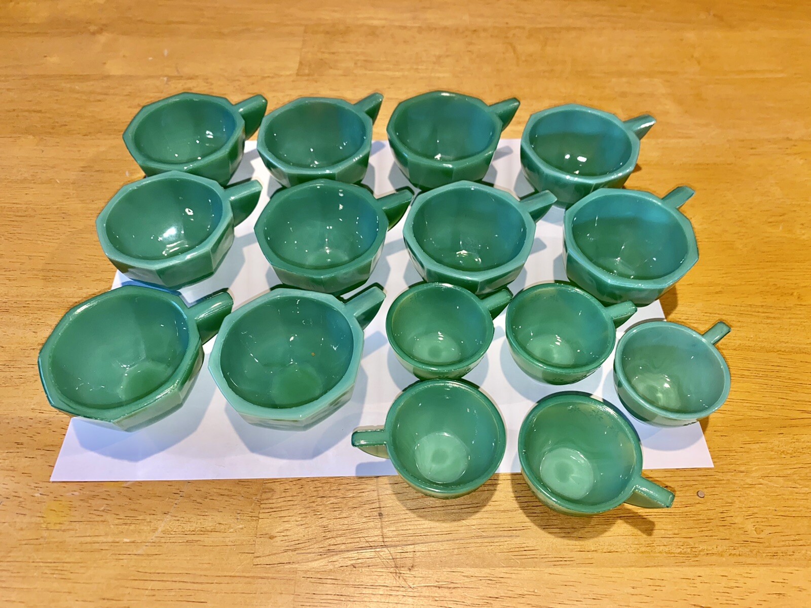 15 Akro Agate Vintage Green Tea Cups Octagonal/Round Shapes Children's Tea Set