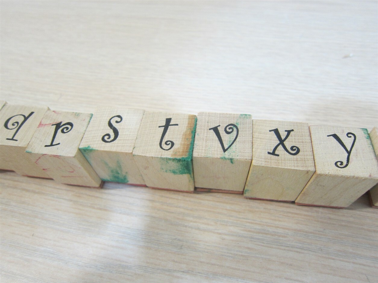 SET OF 24 WOOD MOUNTED RUBBER STAMP LETTERS, CRAFTING/ART, FREE S H
