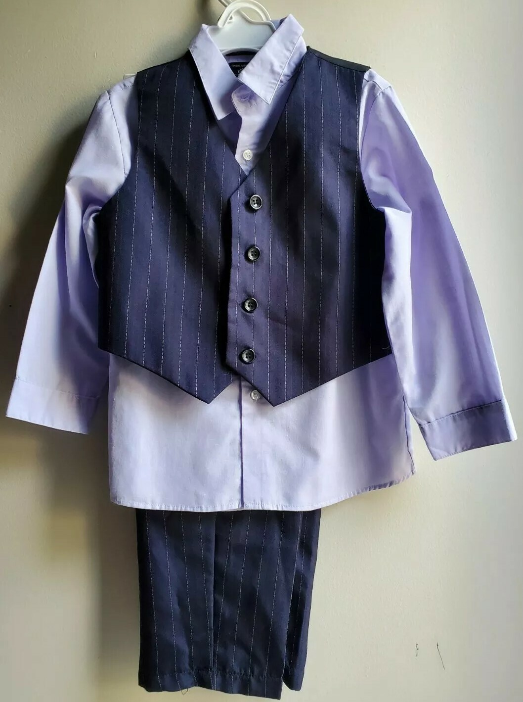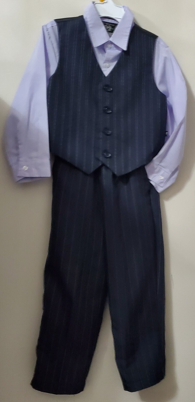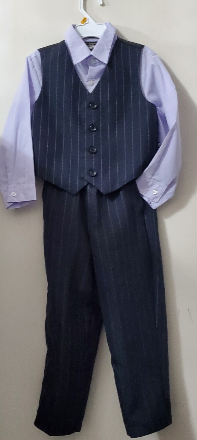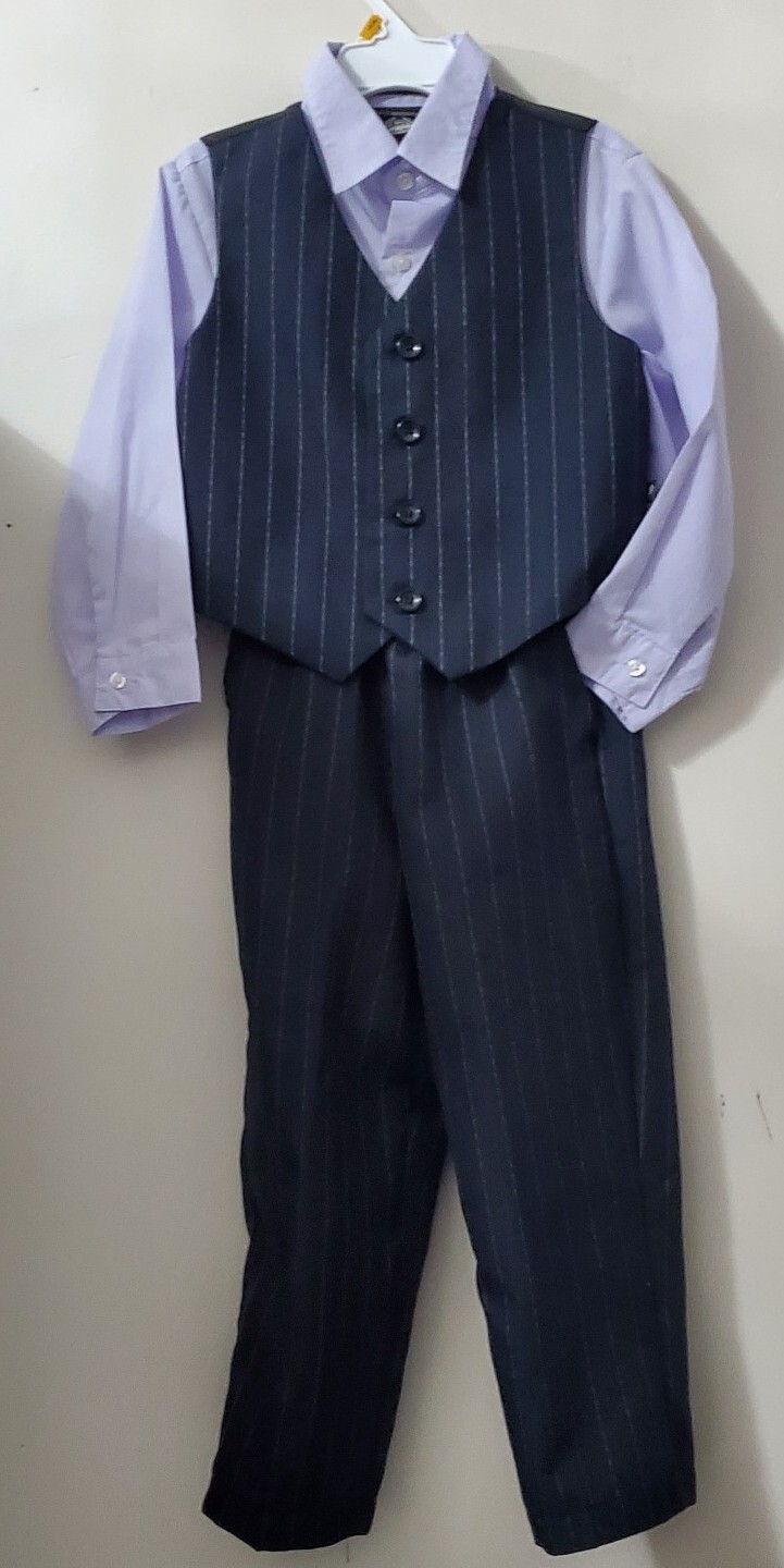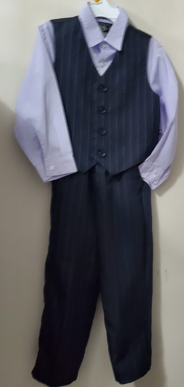 Boy's 3 Piece Set: Vest, Shirt Dress Pants Stripe Suit Size 4