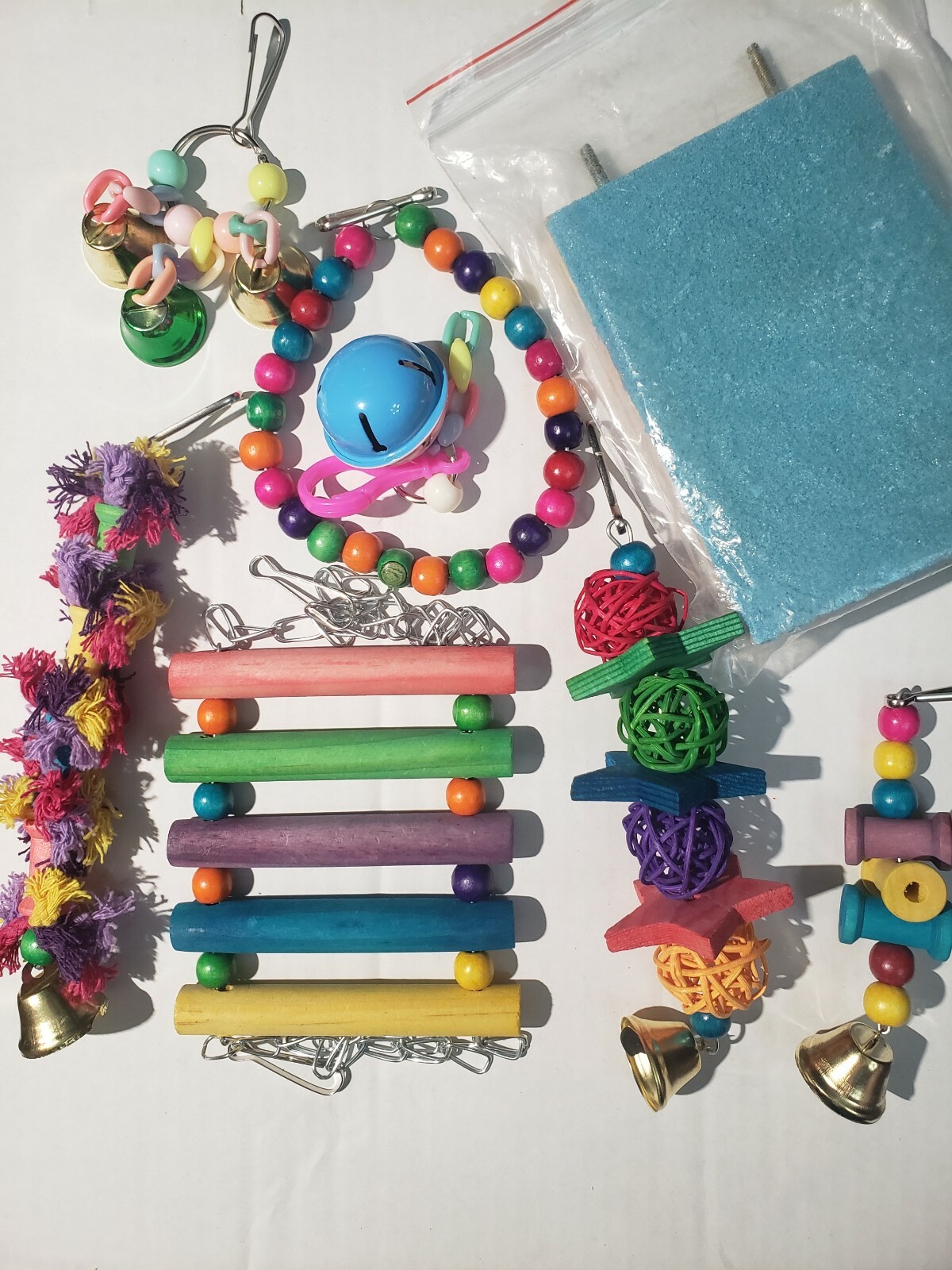 Birds Swing Perch Chewing Toys Hanging Toys with Bells 8 Pieces Total New