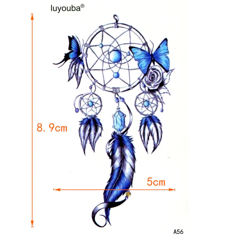 Flash Once Temporary Adhesive Tattoo Dreamcatcher Blue Party Gift