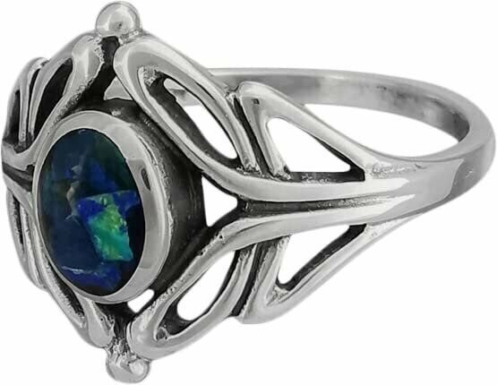 Size 5-925 Sterling Silver Oval Azurite Cabochon Ring, Infinite Looped Silver...