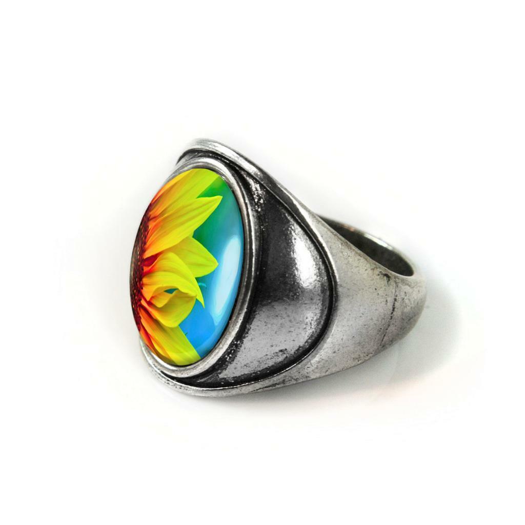 Sunflower Ring - Spring Bloom Silver Handmade Cabochon Ring 7
