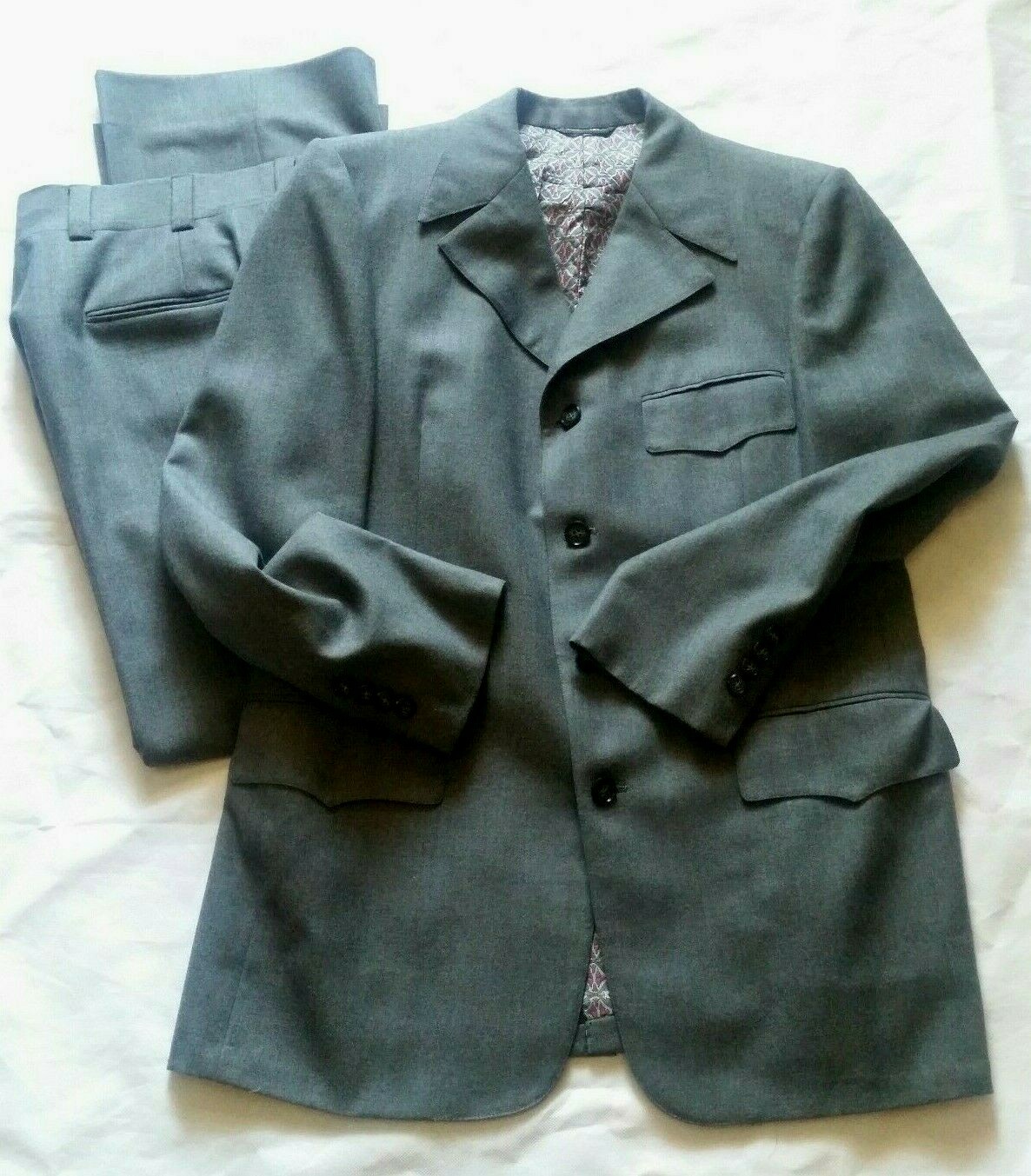 VTG UNION PHOENIX MENS DISCO WESTERN SUIT 39 GREY WIDE COLLAR 4B 2V PANTS 34X32