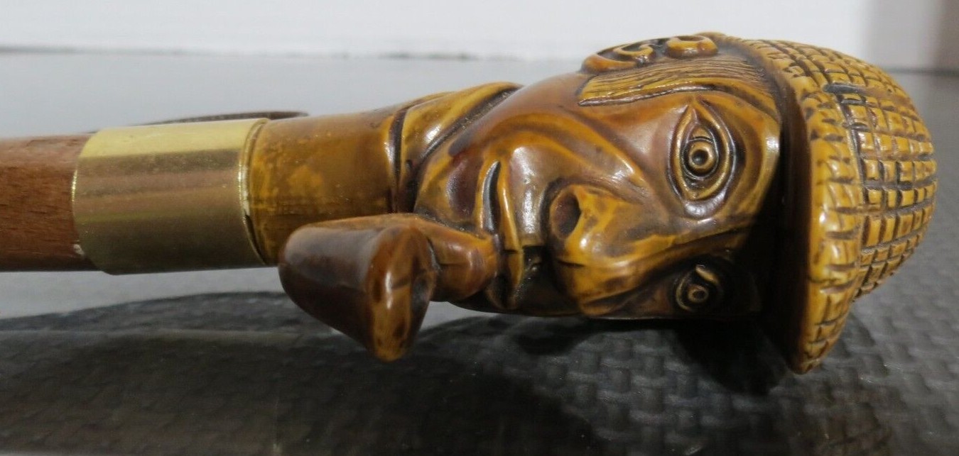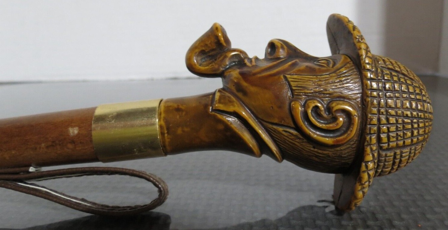 Vintage Sherlock Holmes Shoe Horn Handmade in Italy - Carved Wooden Head