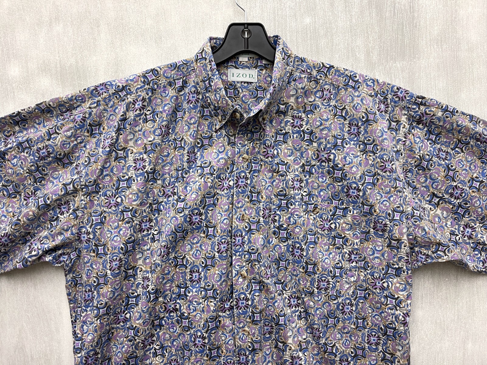 Vintage IZOD Circles Button Front Shirt Mens Large cotton L short sleeve VTG
