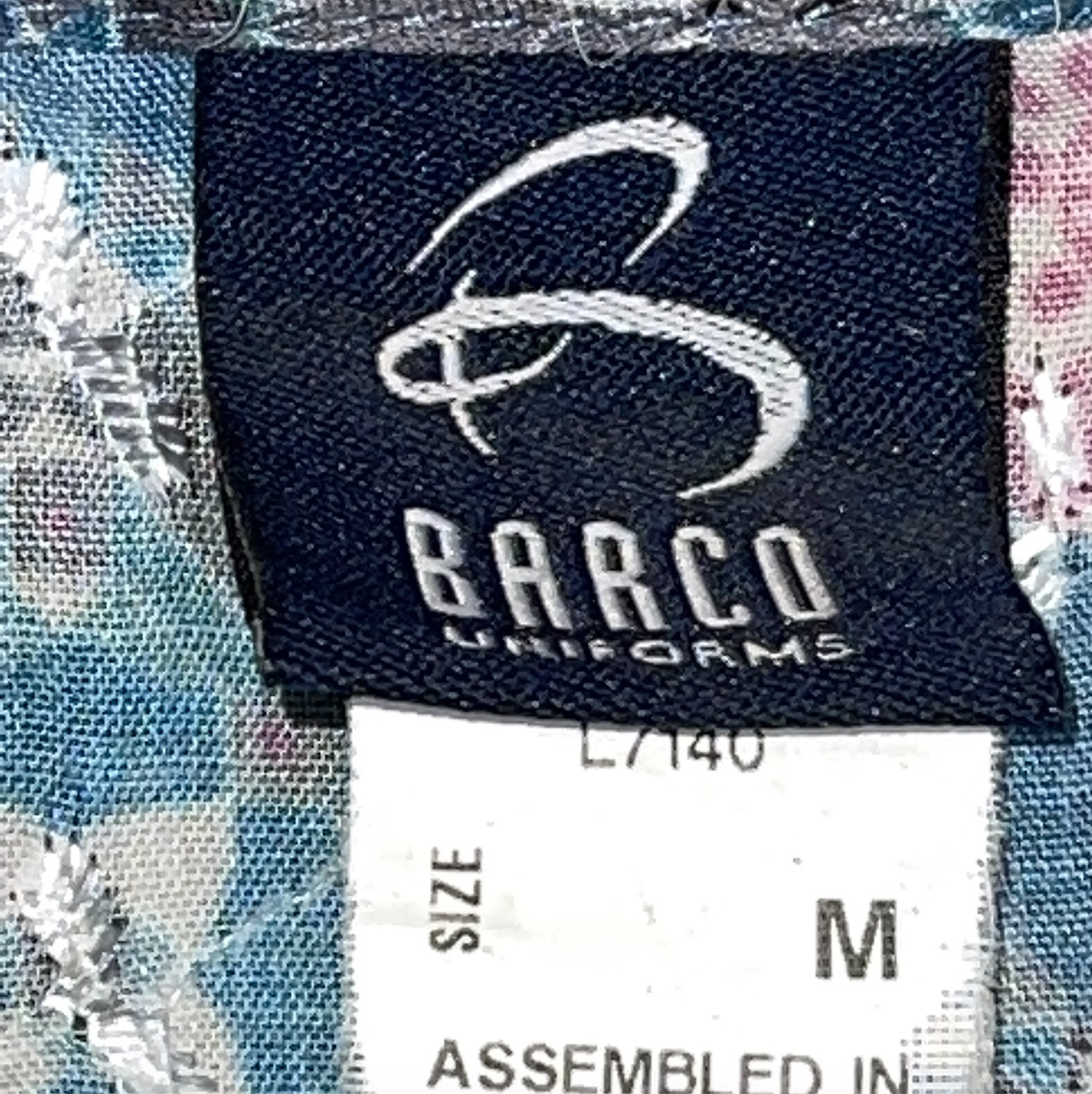 как выглядит Barco Scrub Top Shirt Sz Medium Lightweight Eyelet Embroidered Floral Blue Pink фото
