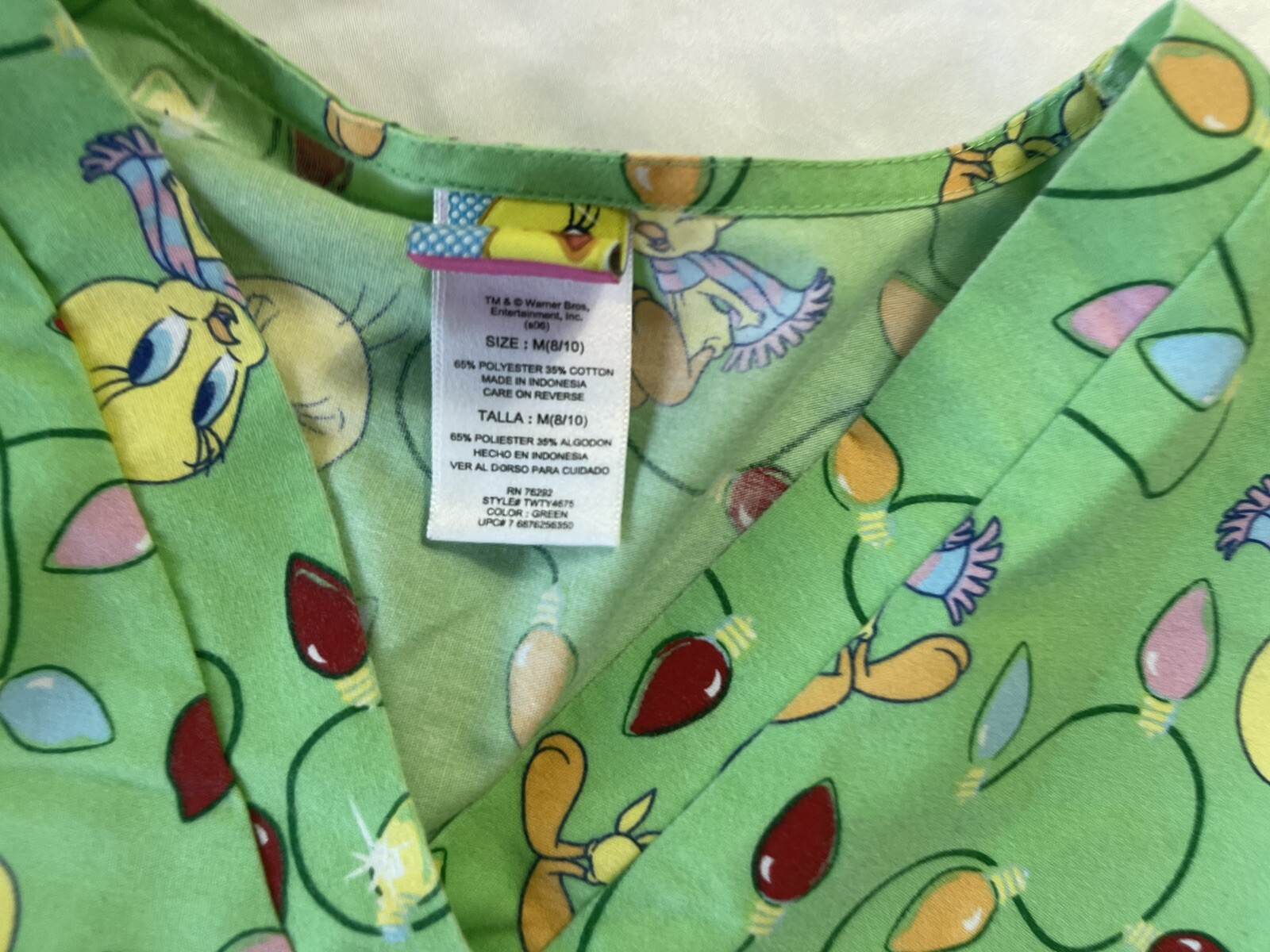 Baby Tweety Bird women's scrub top Medium Mint Official Green Ex Cond