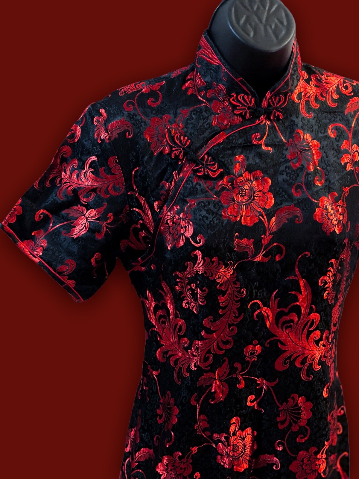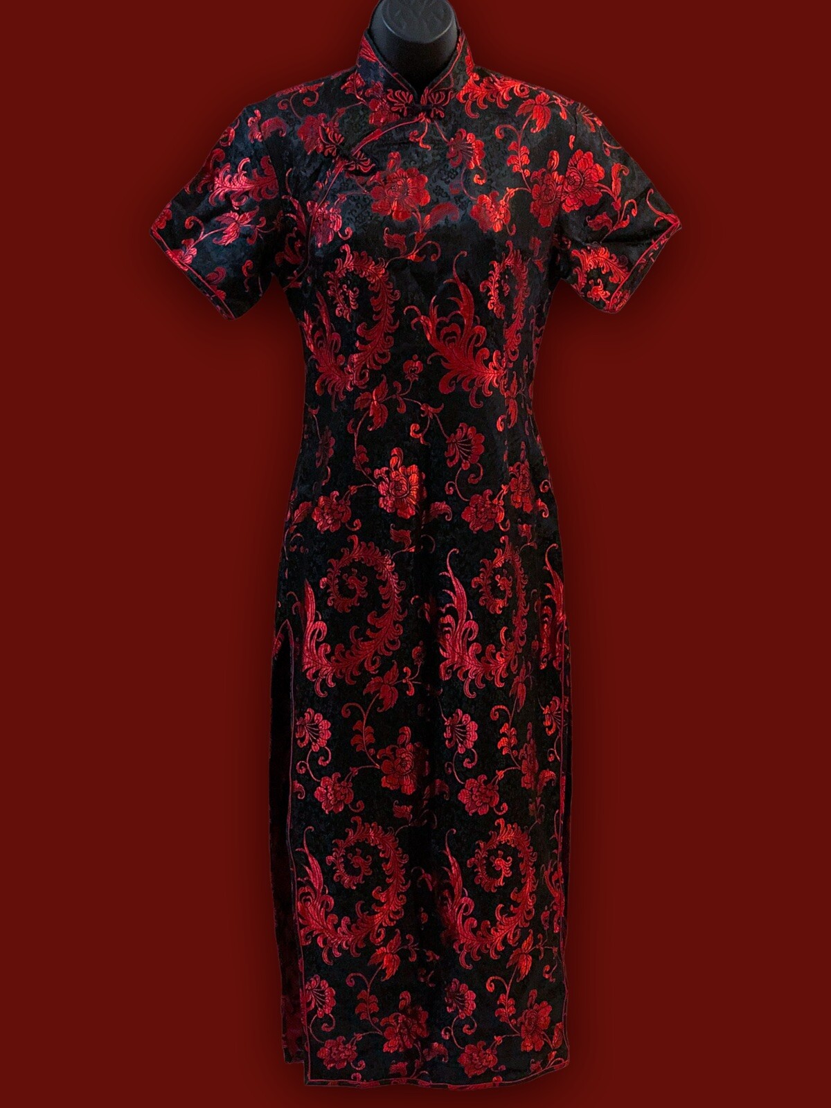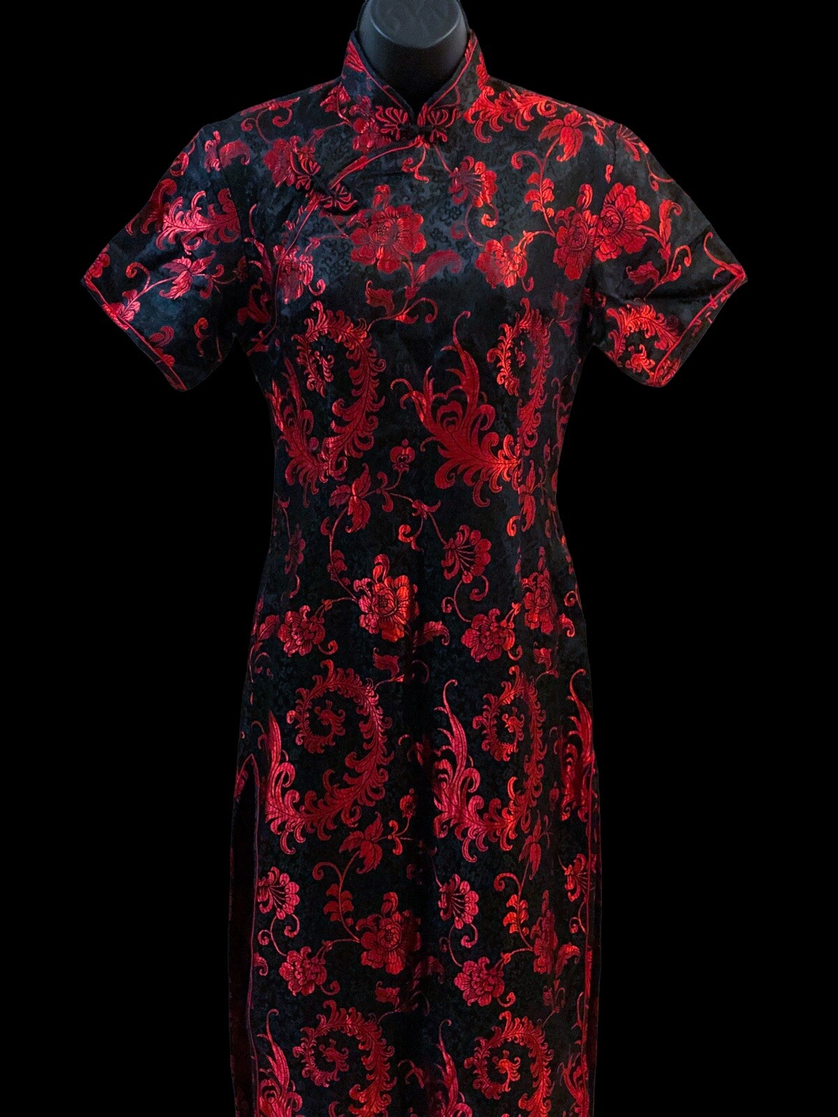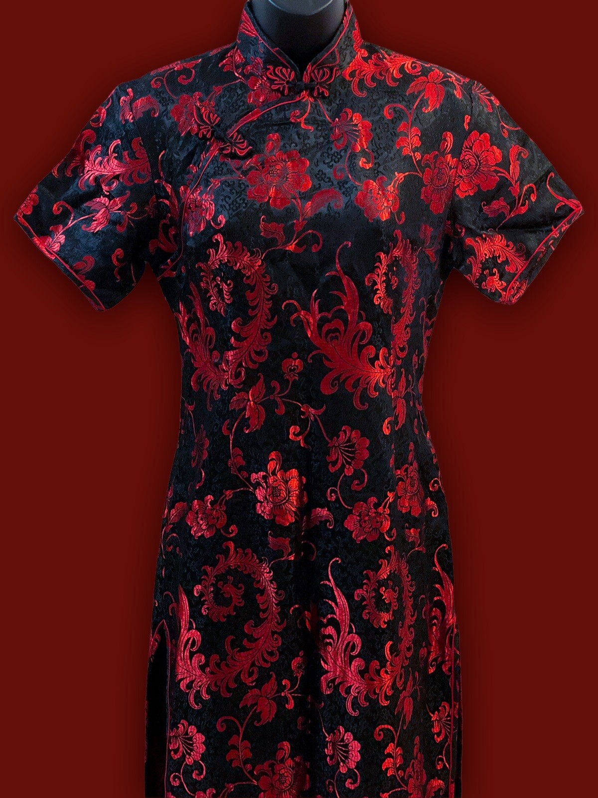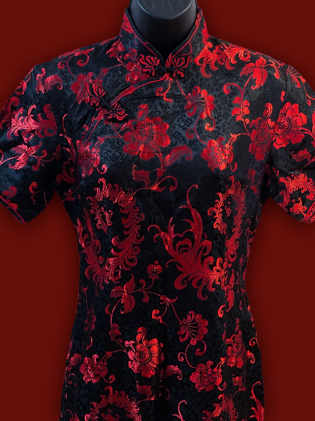 Chinese Brocade, Red, Black, Vintage, Party, Birthday, Wedding, 90s, 80s, 70s, Elegant, Summer, Fall, Winter, Spring, Celebration, Bohemian, City, Classic, Designer, Flower, Love, Rose, Retro, Halloween, Hippie, Hipster, Ethnic, Qipao Dress, Cheongsam Dress |
