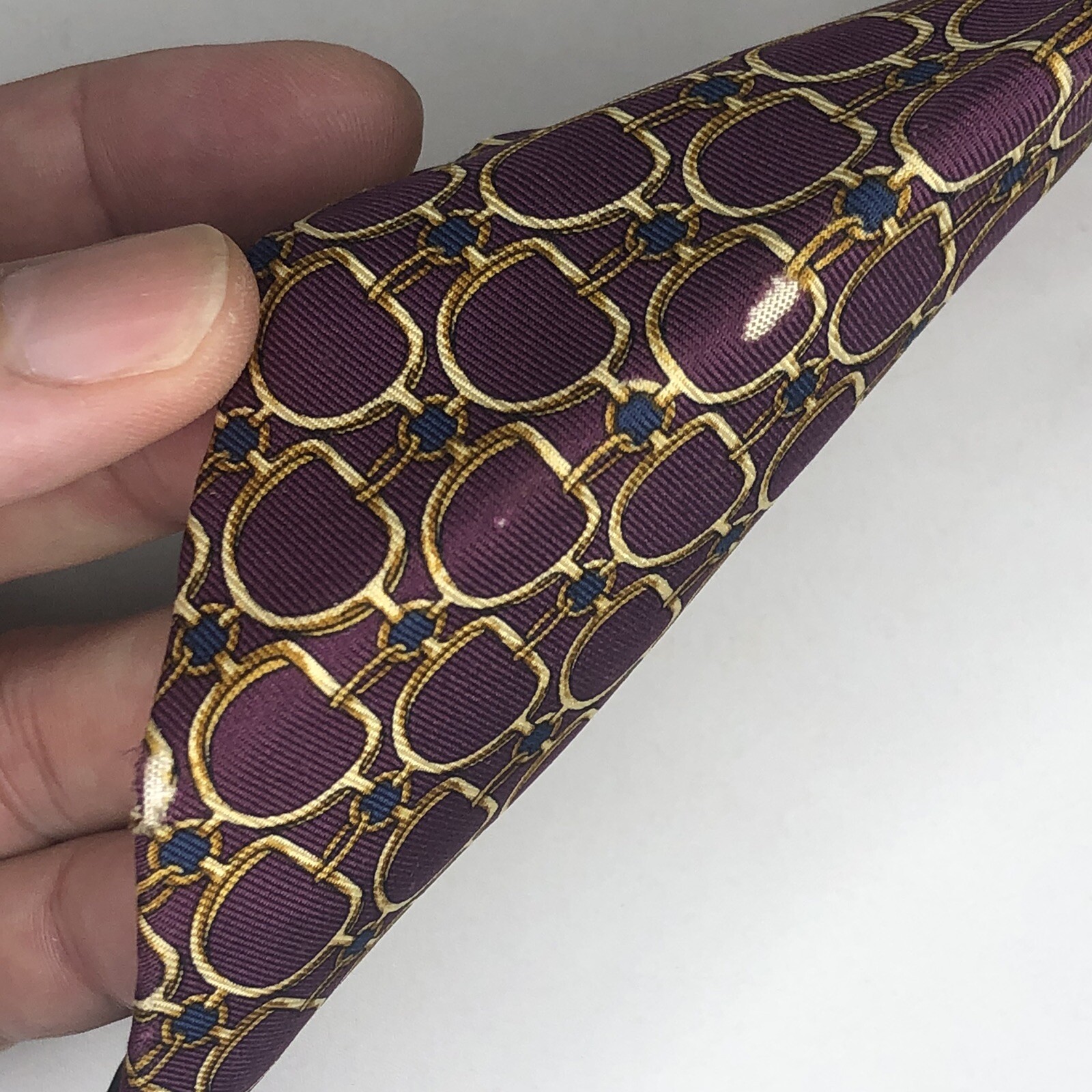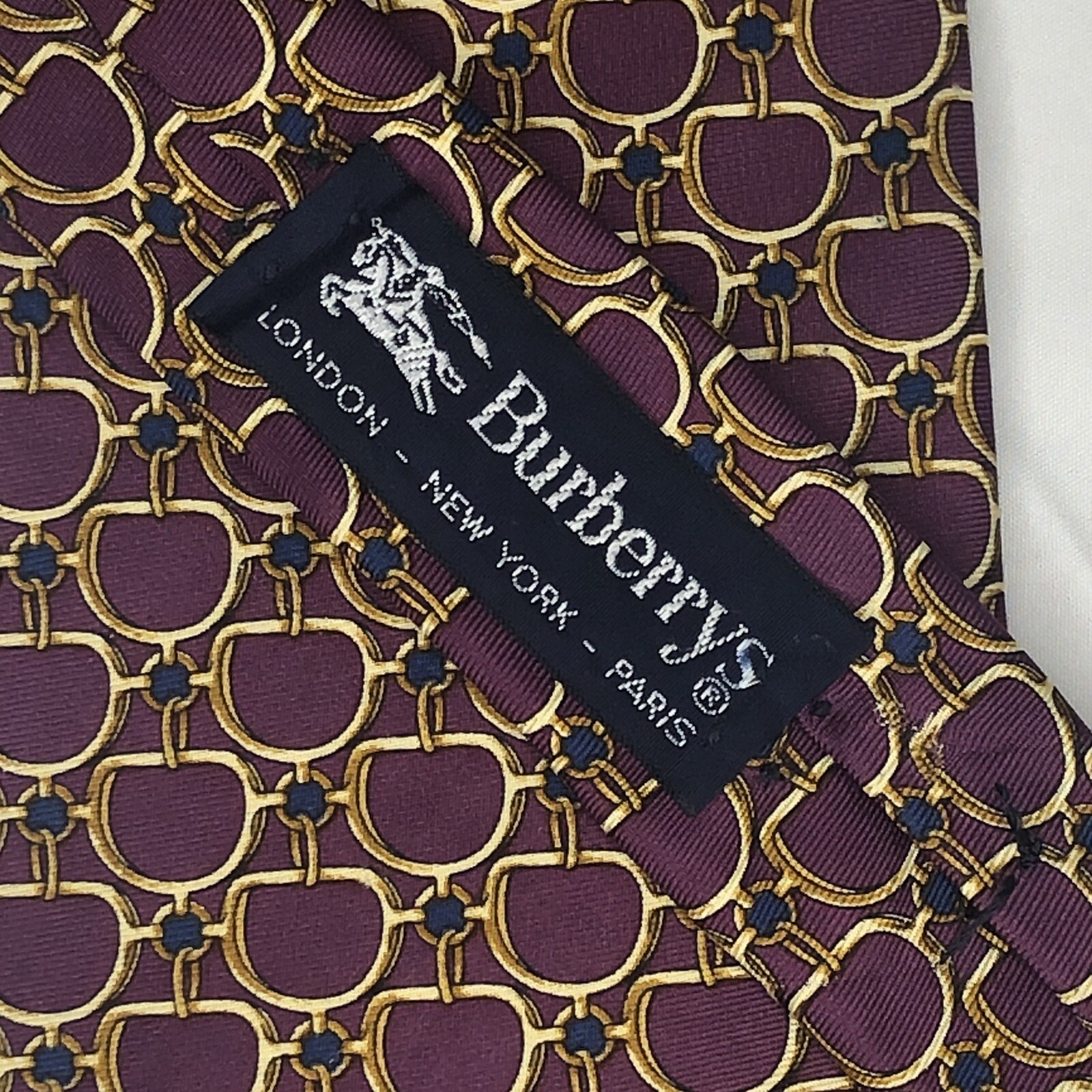 как выглядит BURBERRYS Tie Chainlink Pattern Silk Luxury Red Gold Made in USA Some Damage фото