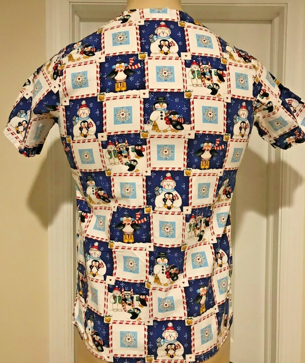как выглядит Christmas Holiday Womens Scrub Top Santa Snowman фото