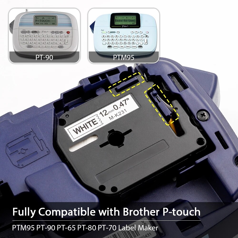 как выглядит 5PK M-K231 MK231 Black on White Label Tape For Brother P-touch PT-65 PT-85 1/2