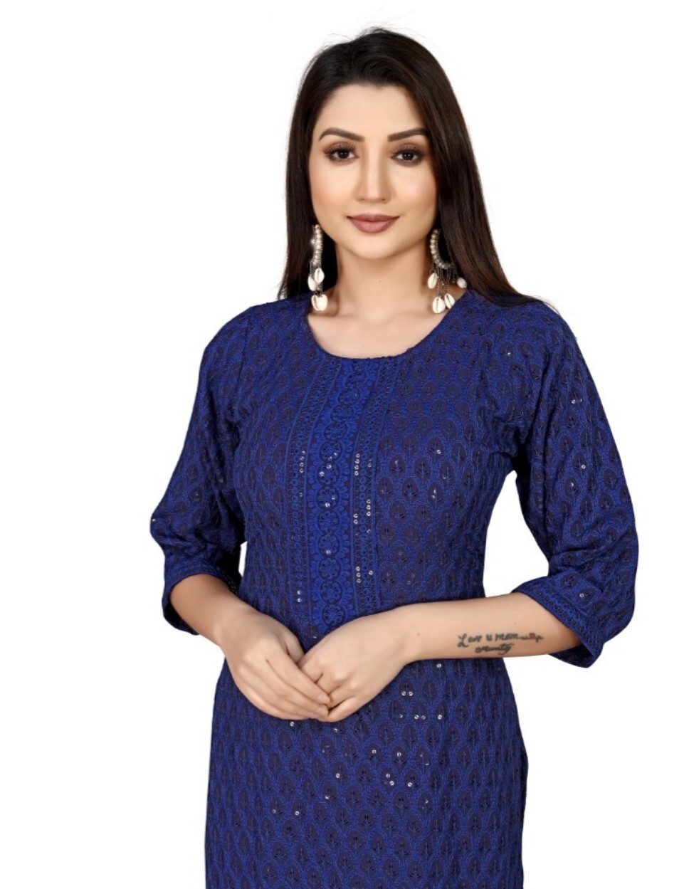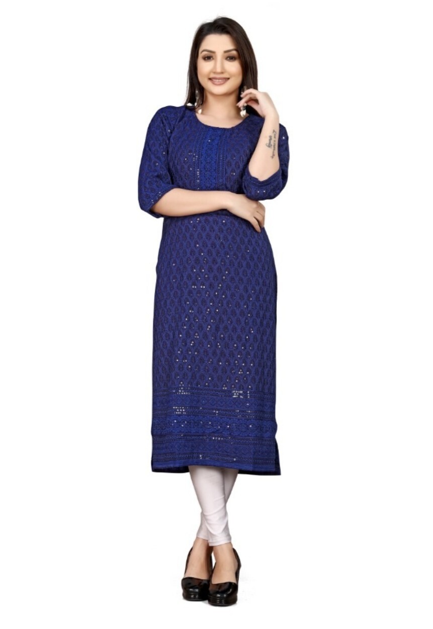 Wedding Party Wear Chikankari Embroidered Sequin Indian Women Straight Kurti
